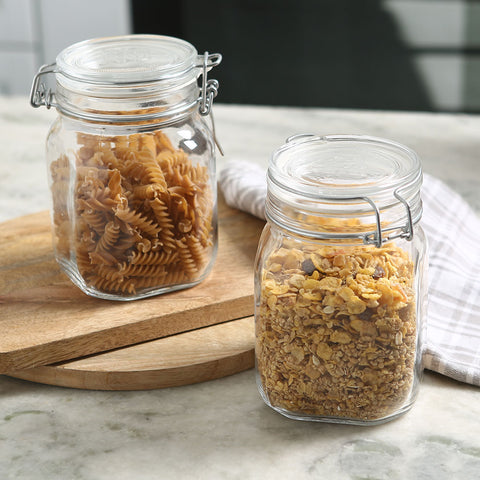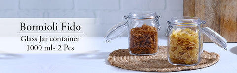 The Bormioli Fido range is high-quality, multipurpose, clear round glass jars that are ideal for storing spices, herbs, teas, jams, flour, crackers, snacks, pasta, coffee, rice, sugar, to smaller servings of cereal. You can even use it to store paper clips, bath salts and much more. The stainless steel buckle is adaptable, and helps in providing an air-tight secure seal preventing any leaks and helps to keep the contents fresh. Wide opening makes filling the jar and dispensing the contents very easy and avoids spillage. Available in set of 2.