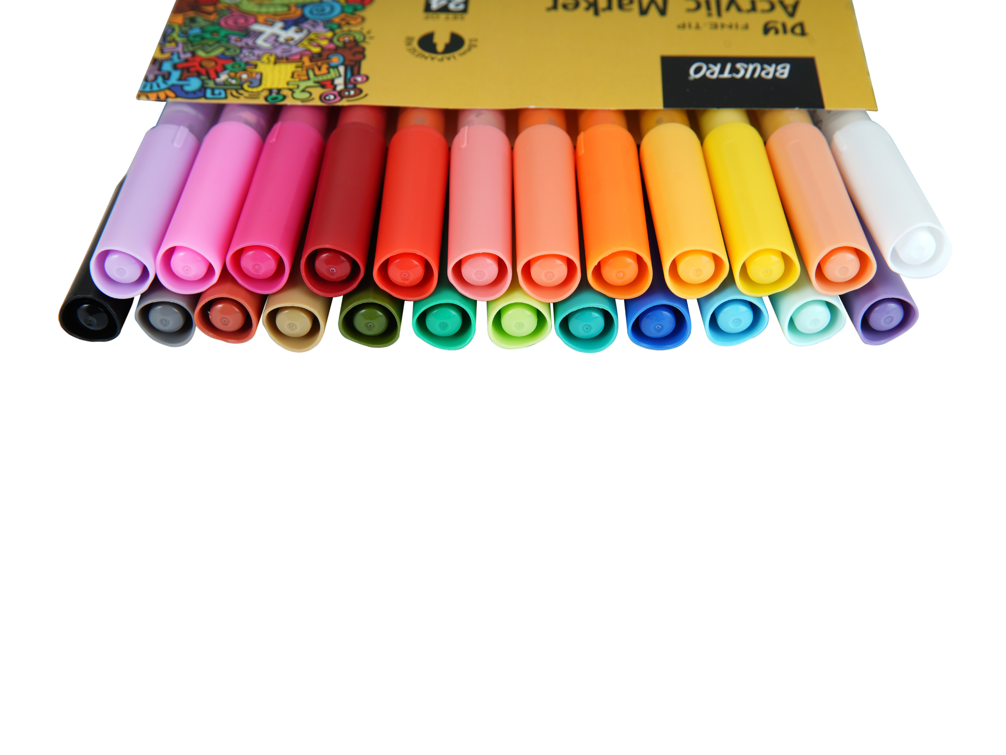 Brustro Acrylic (DIY) Fine Tip Marker Set of 24 – Basic 0.8MM, for Craftworks, School Projects, and Other Presentations