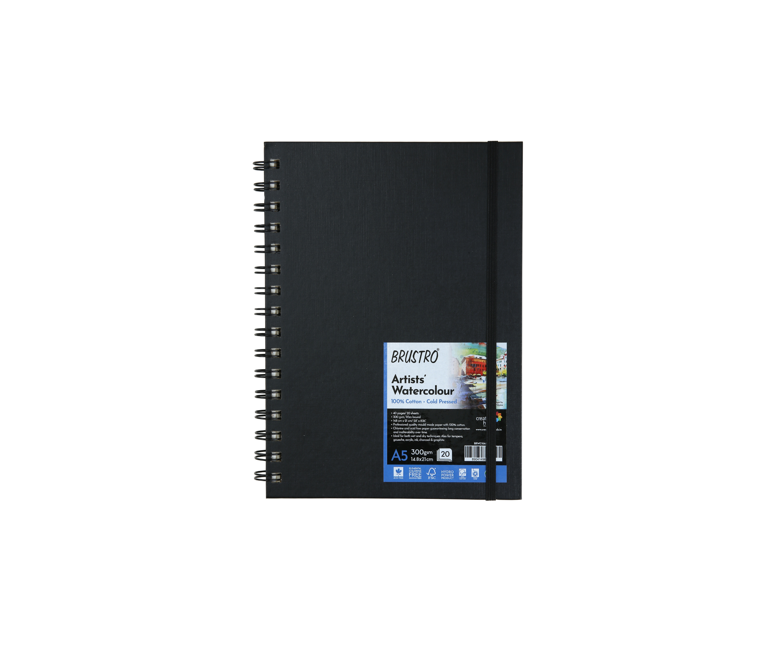 BRUSTRO Artist 100% Cotton Watercolour Wiro Bound Journal Cold Pressed 300 GSM, A5 – (20 Sheets)