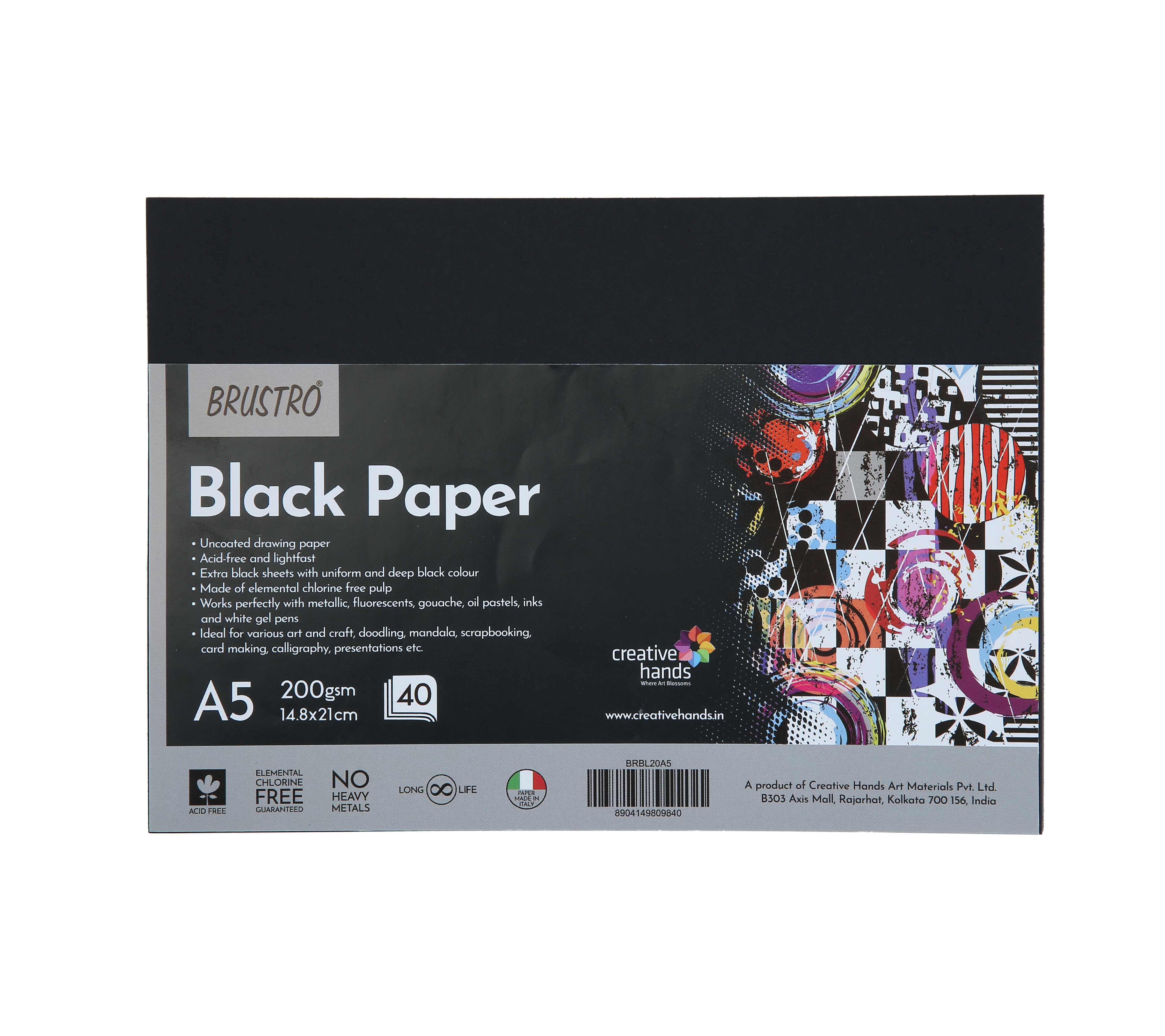 - Uncoated drawing paper, Acid-free and lightfast Extra black sheets with uniform and deep black colour, Made of elemental chlorine free pulp Works perfectly with metallic, fluorescents, gouache, oil pastels, inks and white gel pens.
