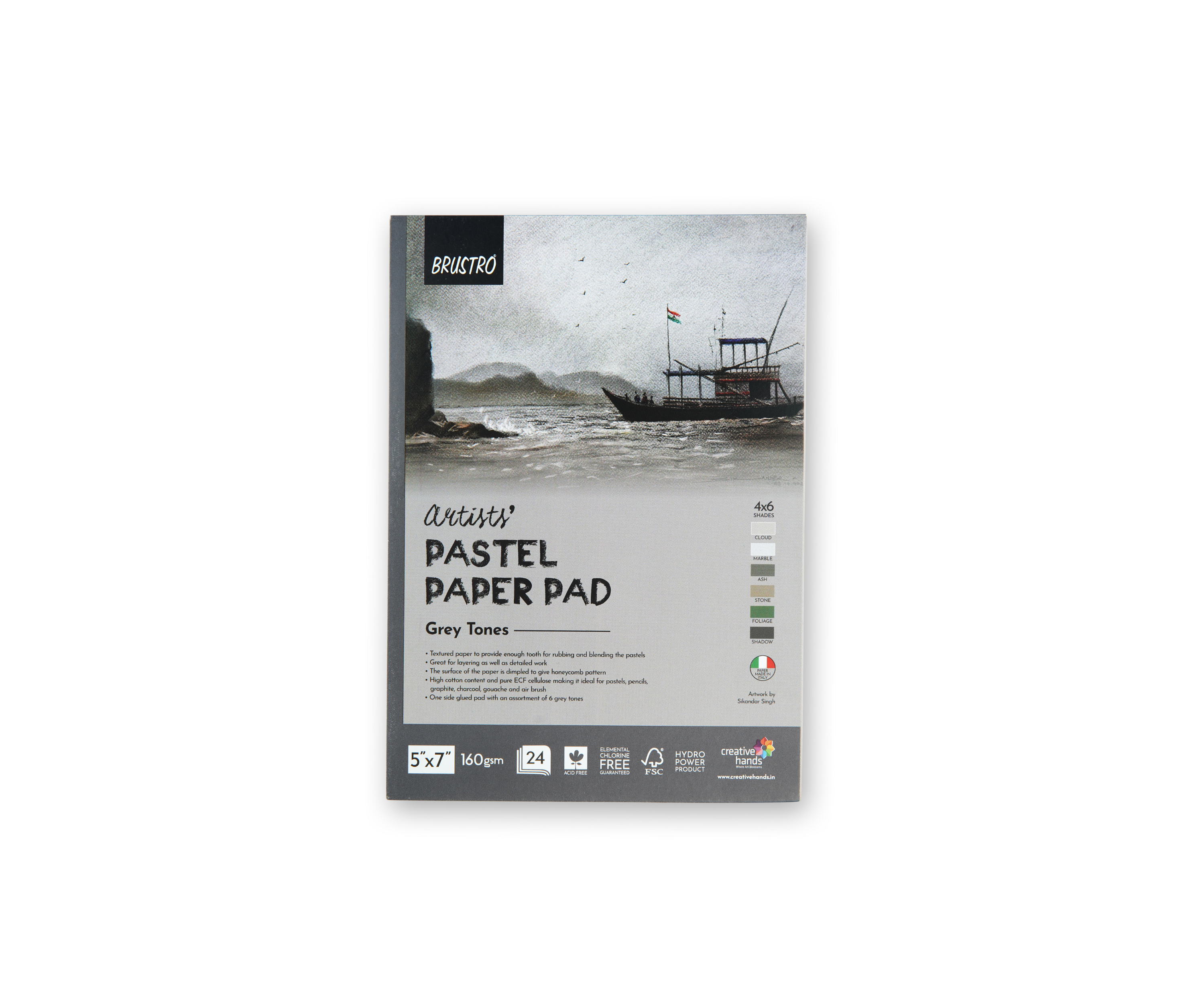 - One side glued pad with 4 each assortment of 6 grey tones (Cloud, Marble, Ash, Stone, Foliage & Shadow). Size- 5 x 7″ (Inches)