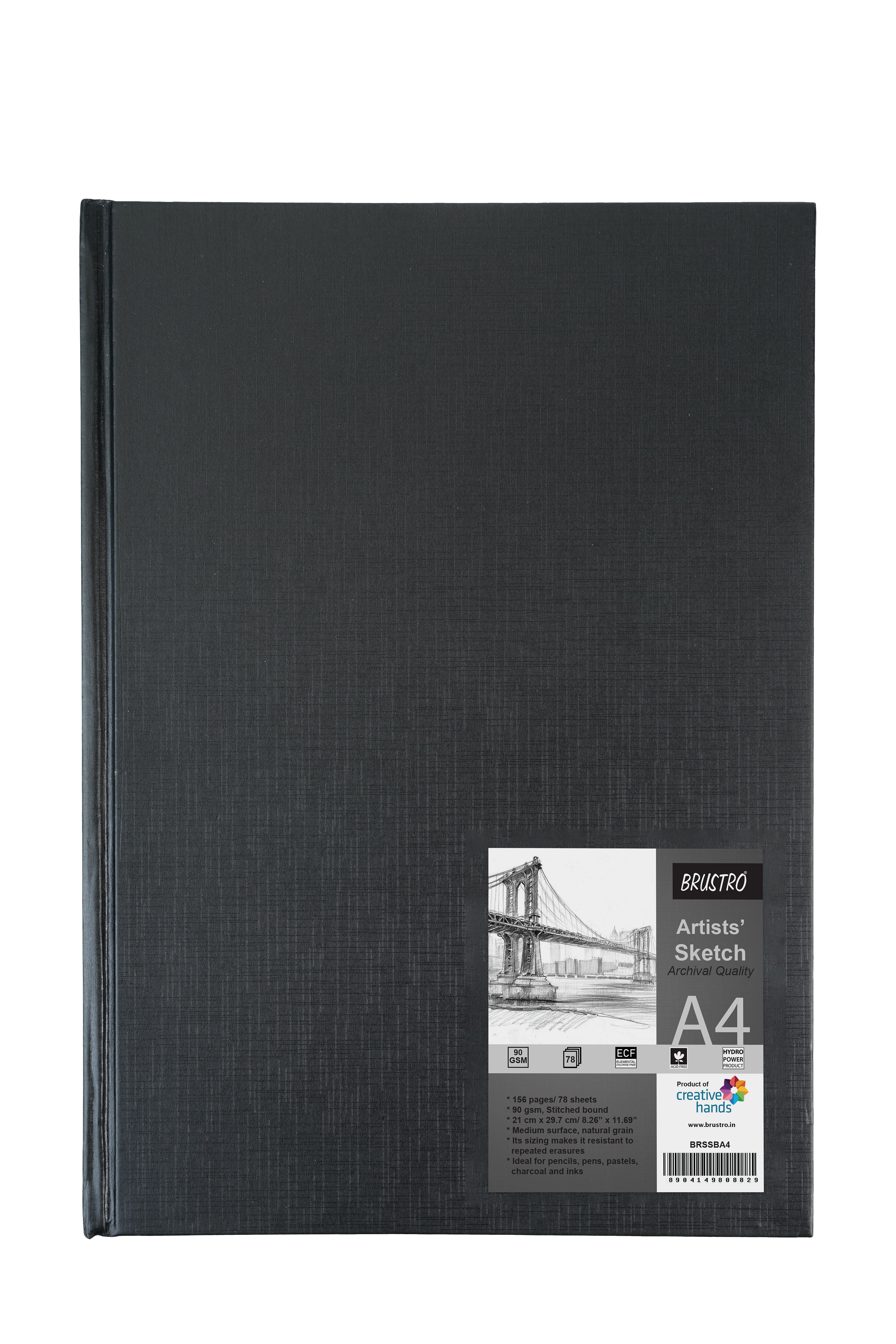 - Acid free stitched bound. The books lie open flat to facilitate drawing across both pages, outer black hard cover with pleasant feel