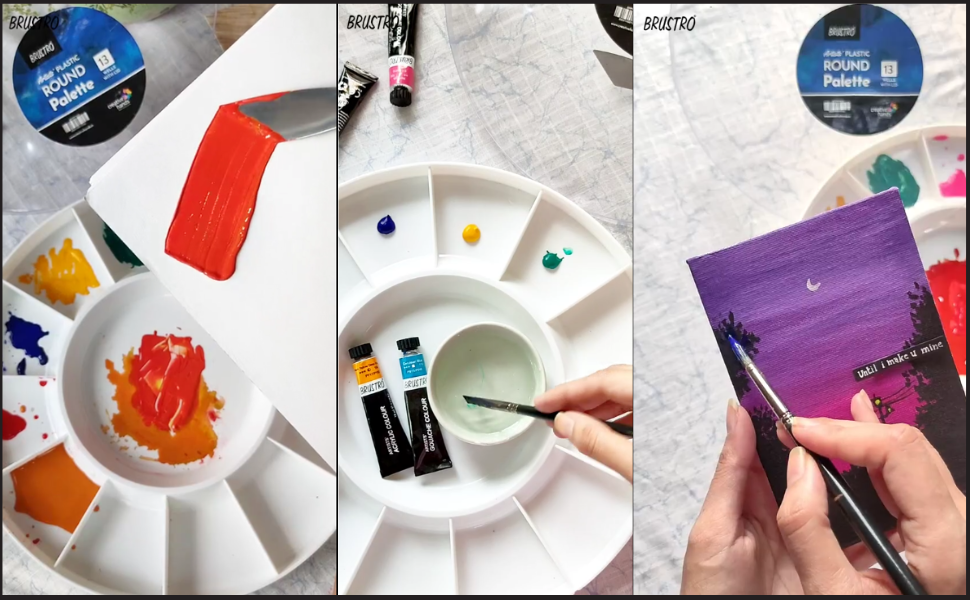 Brustro Circular plastic palette with 12 uniform wells and a central large mixing area. It Comes with a clear lid for easy cover up when the palette is not in use.