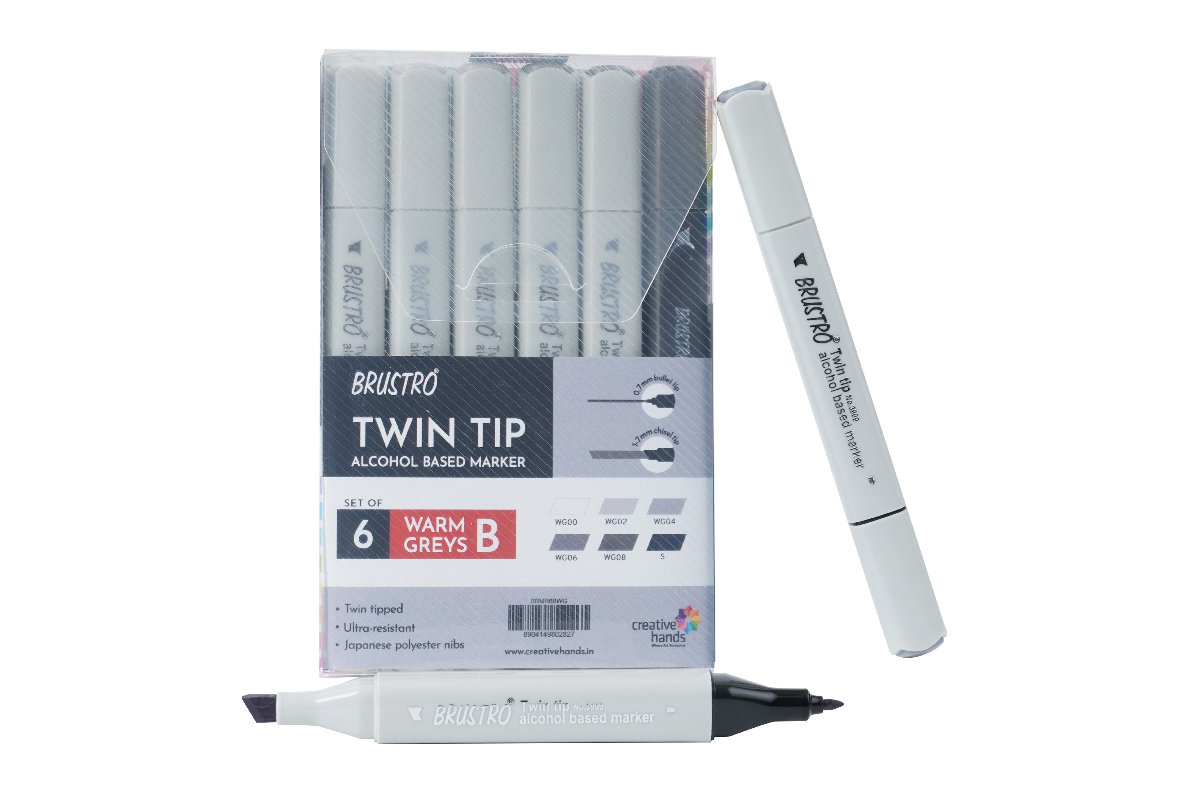 - Set of 6 Warm Grey Shades (Incldues: Warm Grey 0, Warm Grey 2, Warm Grey 4, Warm Grey 6, Warm Grey 8 & Black) in a Blister Pouch. Highly compatible with Brustro Bleedproof Marker Papers 70 GSM