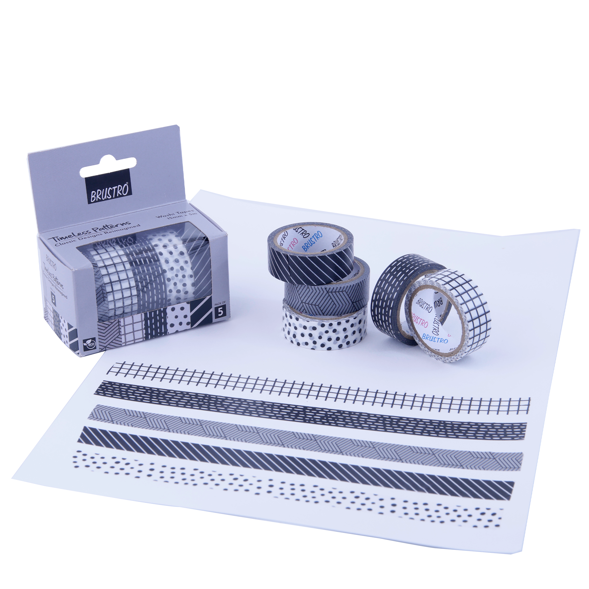 Elevate your crafts with Brustro’s Timeless Pattern Washi Tape set of 5. These eco – friendly masking tapes features a range of classic designs and are perfect for adding an elegant touch to any project. With sizes of 15mm× 5 m, these tapes have recyclable materials and an easy-to-tear design, they offer both style and convenience. Ideal for scrapbooking, journaling, gift wrapping, or home décor, these versatile tapes make every creative idea come to life while being environmentally responsible. The low tack adhesive helps in easy repositioning and leaves no residue when removed.