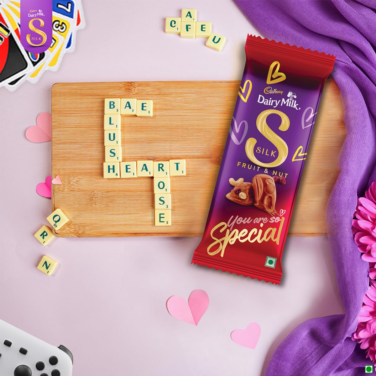 Details: The perfect gift for your special someone- this Valentine’s day, gift him/her the most indulgent chocolate. Melt their heart with sweetest gesture. Cadbury Dairy Milk Silk is all about regaling in the richness and creaminess of chocolate. Cadbury Dairy Milk Silk Fruit and Nut is made with a glass and a half of milk and offers a delicious combination of creamy milk chocolate and almonds & raisins. The perfect Valentine’s Day gift for your boyfriend/girlfriend. This milk chocolate bar is a perfect sweet to indulge in all alone or as a chocolate gift pack for gifting on special occasions like birthdays and get-togethers. Every bar of Cadbury Dairy Milk Silk is made from 100% sustainably sourced cocoa. It is suitable for vegetarians.
