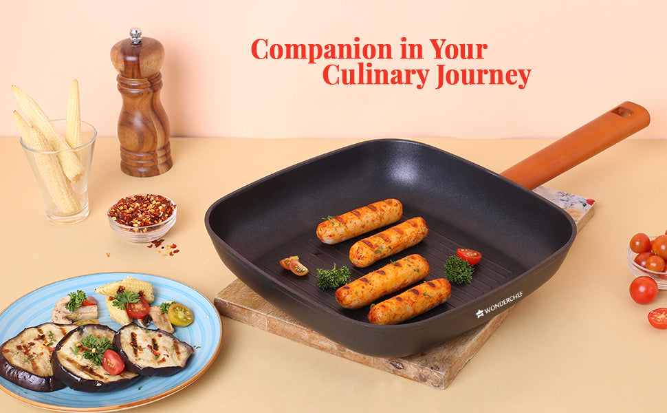 - Virgin Aluminium: Wonderchef cookware is made of 99.7% pure virgin aluminium without any chemicals or impurities. This ensures faster heat transfer avoiding burning of food, and the non-stick coating lasts much longer.
