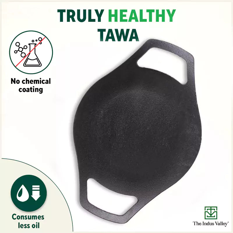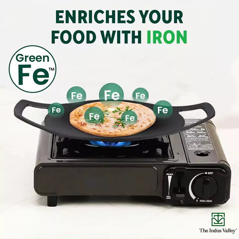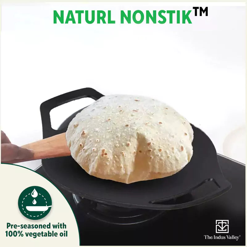 🌿100% NATURAL & TOXIN-FREE: The Indus Valley Premium Thick Cast Iron Roti Tawa is made of 100% natural material that’s food-safe. No chemical coating. So, a healthier alternative and the best roti tawa choice when compared to non-stick tawas.