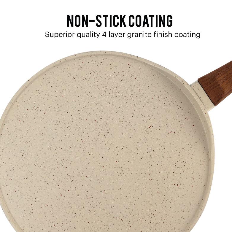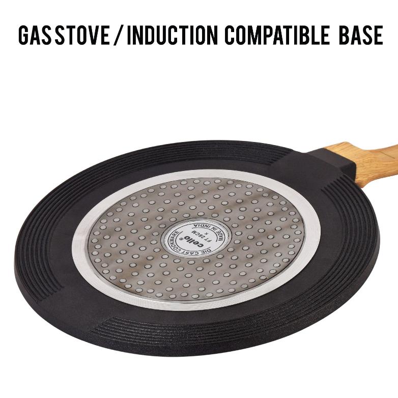 - Non-stick Coating- Cello’s Castello Die Cast cookware Aluminium Flat Tawa features a durable 4-layer nonstick coating, 4 mm Thickness,which ensures easy food release and minimizes the need for excessive oil or butter during cooking. This coating is made from food-grade materials, providing a safe and healthy cooking surface.