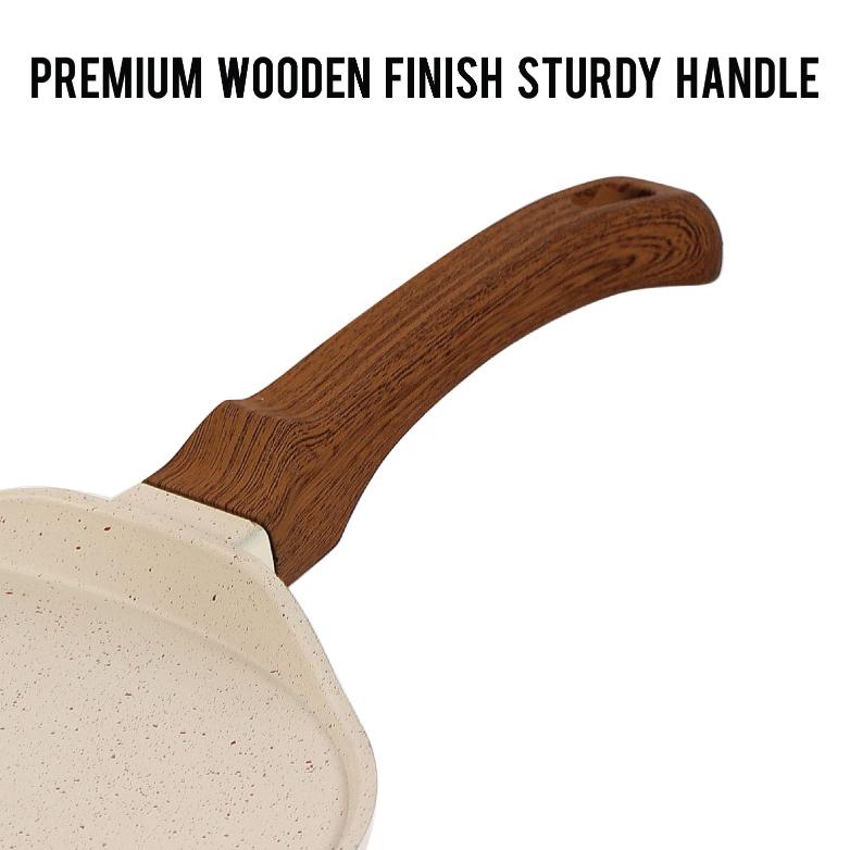 - Wooden Handle: Flat Tawa is equipped with a premium wooden finished handle. These handles are ergonomically designed for a comfortable and secure grip, providing optimal control while cooking. The handles are also heat-resistant, ensuring safe handling even when the cookware is hot.