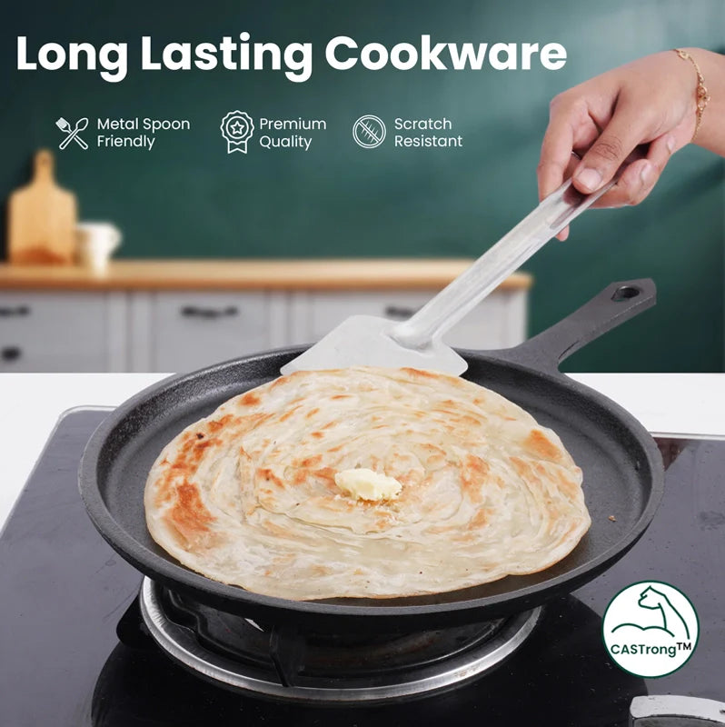 CASTrong Cast Iron Cookware Set: Free ₹400 Tadka Pan + Cast Iron Tawa With Handle (Pre Seasoned) + Cast Iron Kadai Wok Model + Cast Iron Fry Pan, Kitchen set for Home, 100% Pure, Toxin-free