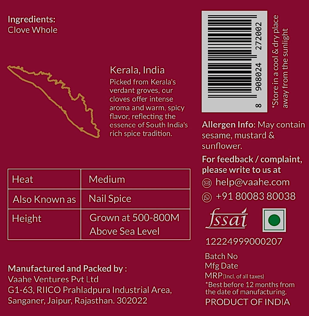 Our single-origin cloves bring a warm, spicy flavor that adds a distinctive depth to your dishes. These aromatic buds are perfect for infusing your recipes with a rich, complex taste. Ideal for seasoning meats, desserts, and beverages – discover the best quality cloves.