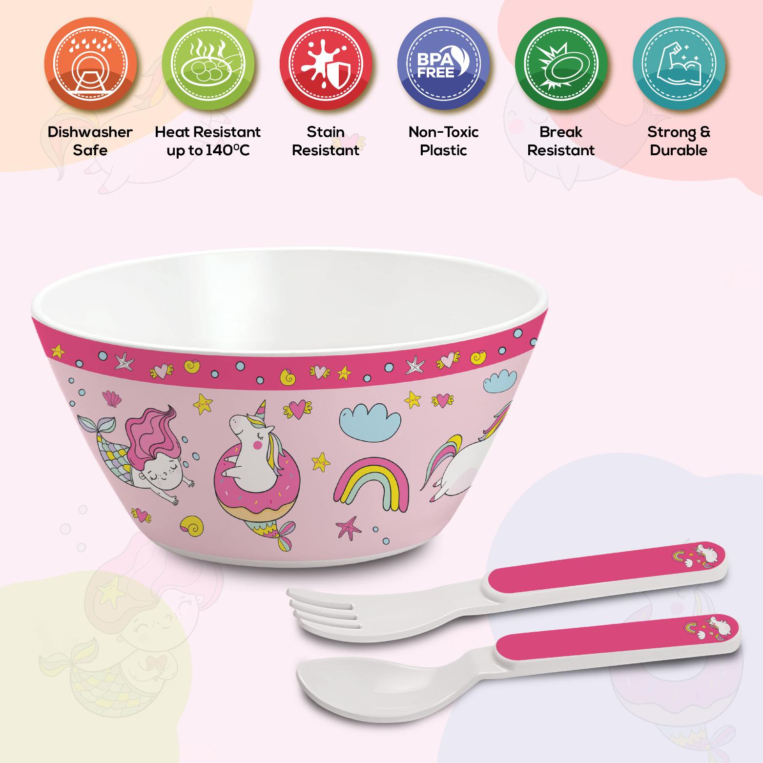- 🎨 Cool Prints: Specially made for kids, our bowl set features cool colors and attractive prints, making mealtime fun and encouraging self-feeding.