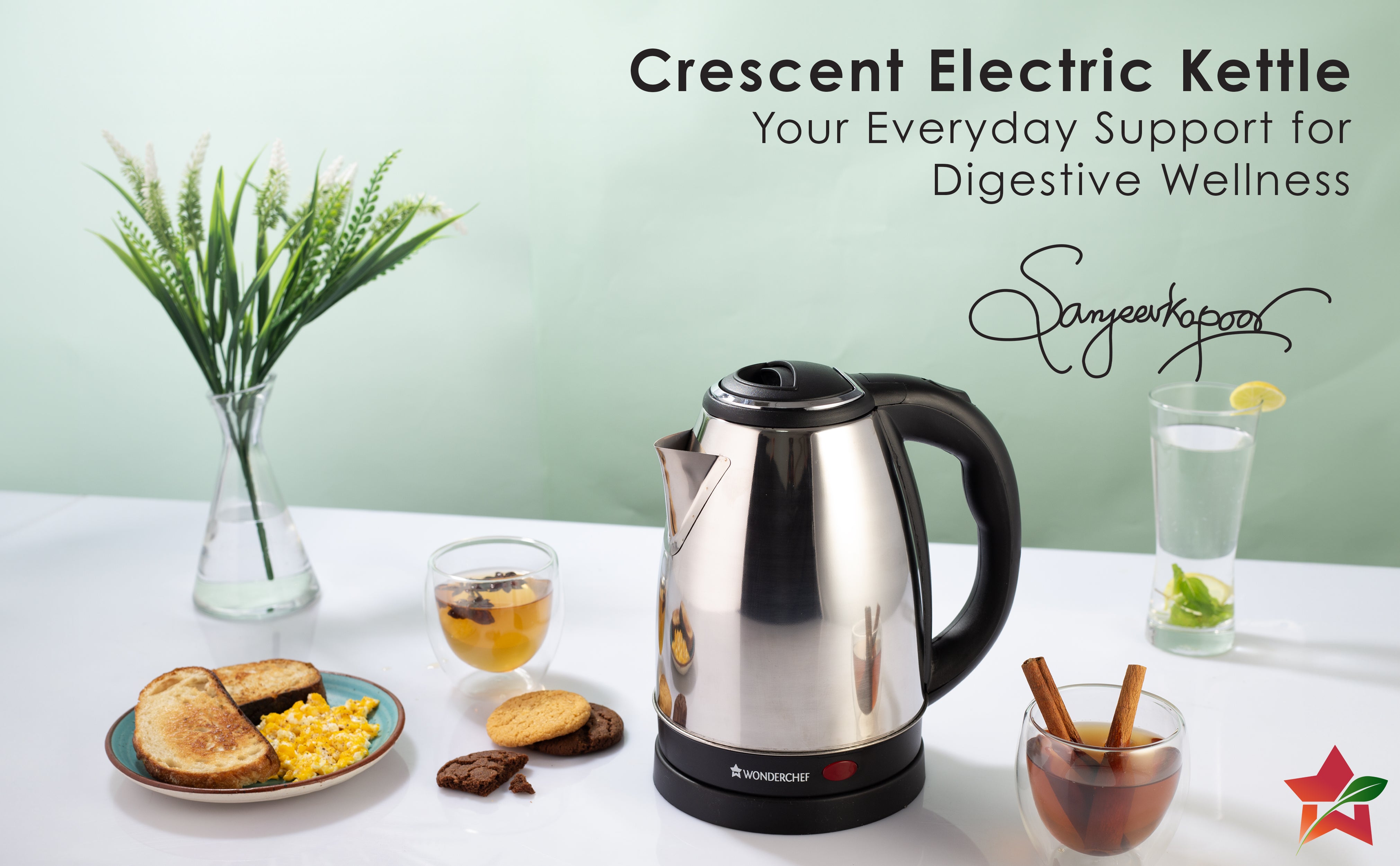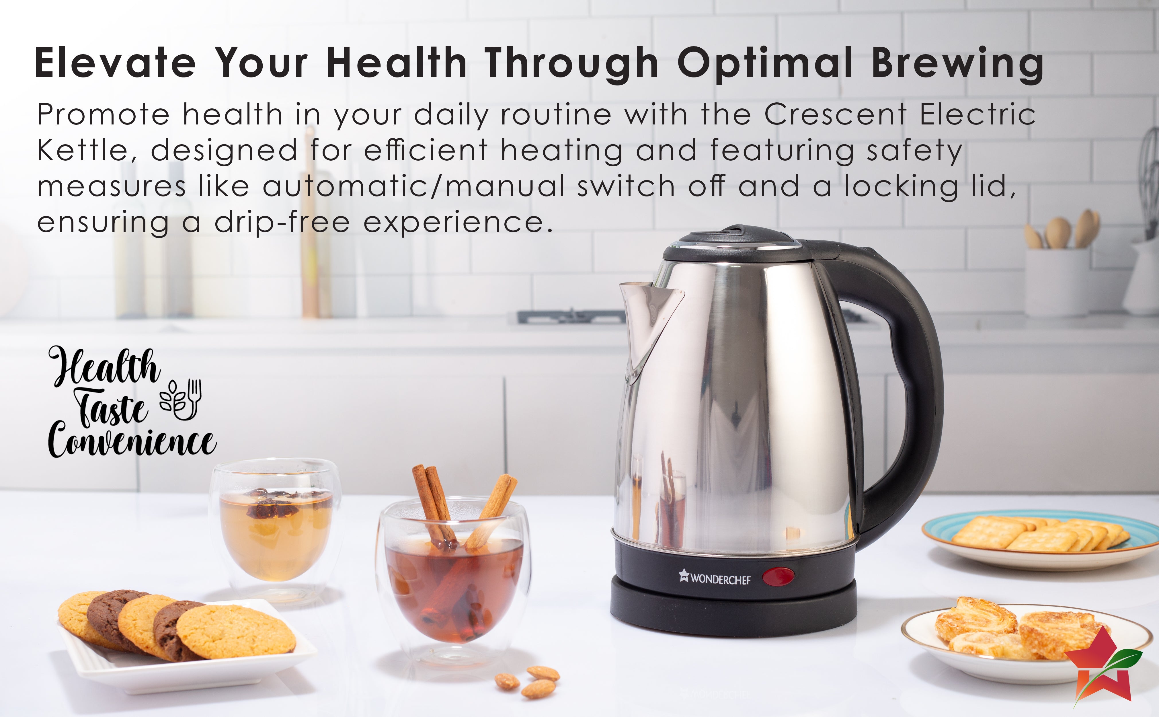 Wonderchef Crescent Electric Kettle -1.8 Litres for quick & easy boiling of milk, water or to prepare instant tea /coffee.