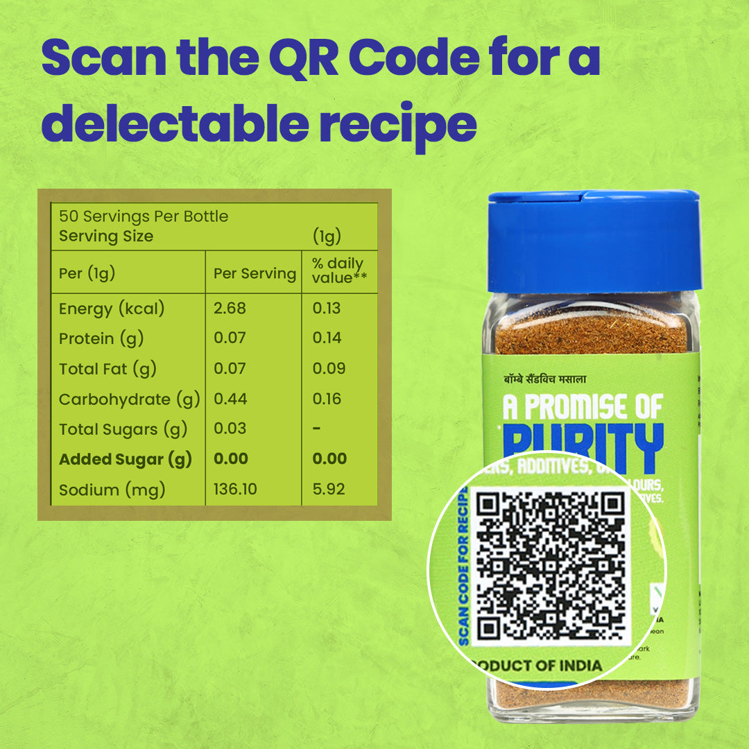 Hey! It’s me, Bombay Sandwich Masala. Take a trip down memory lane to the one sandwich experience every Mumbaikar respects, remembers, and cherishes – sandwiches from the iconic Mumbai sandwichwalla outside our schools! This seasoning is a testament to the honest, hardworking, and ever smiling sandwichwallas who have toiled for years outside our schools and who have satiated the hunger of millions of smiling children over the years. Freshly machine ground using our sophisticated hammer crushers and micro pulverisers, the blend is mixed in an automatic GMP blender to achieve the desired balance and consistency.
