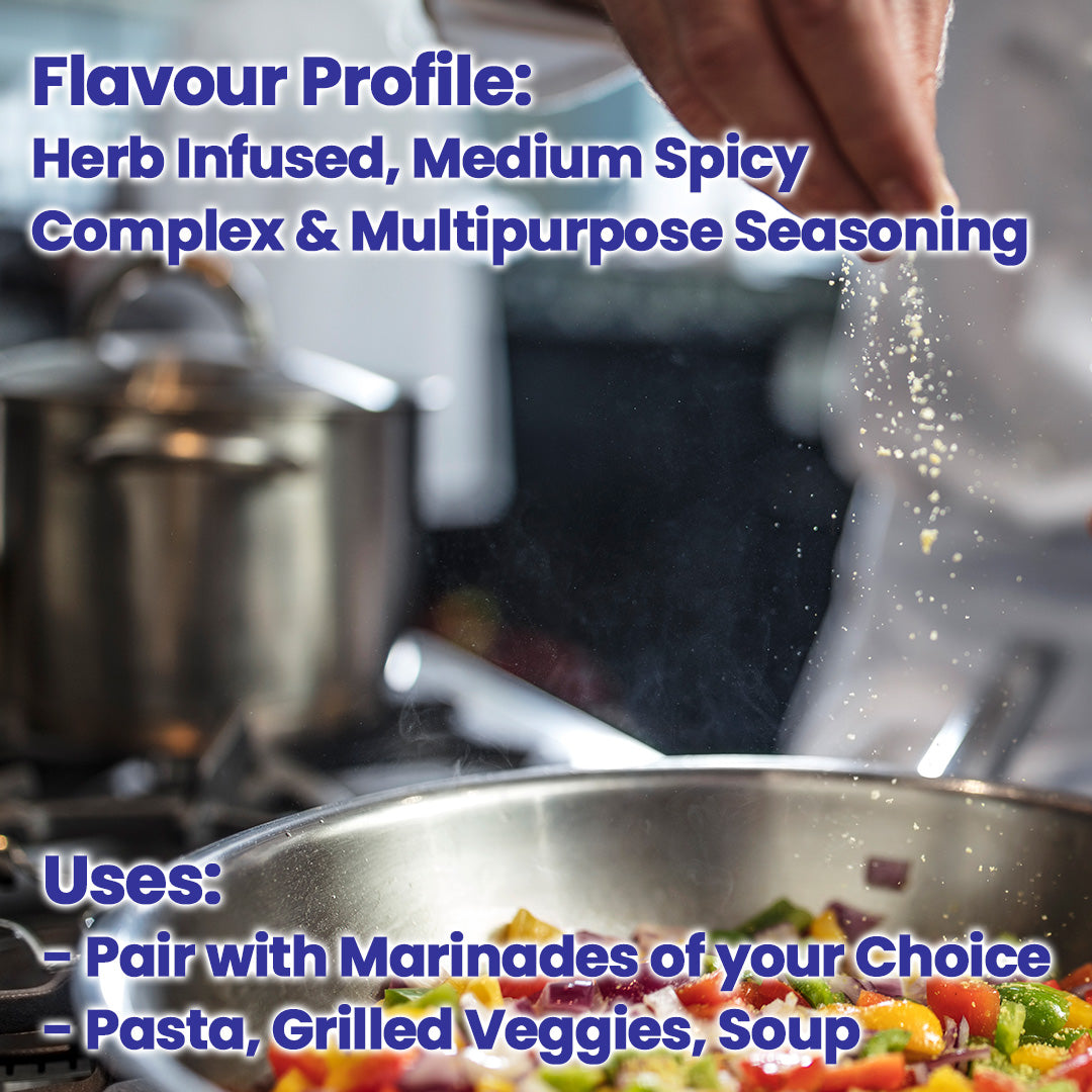Hey! Its me Classic Italian Seasoning. A specially curated herb blend, CRISTA Classic Italian Seasoning is an amalgamation of exotic herbs and traditional spices to add a complex, deep, balanced and authentic flavour to Italian entrées. Starkly different from traditional pizza and pasta seasonings, this seasoning pairs beautifully with marinades of your choice, grilled veggies and soups. It is far more versatile than a pizza seasoning with a hint of spice through chilli flakes complimenting a balance of herbs and spices. Freshly machine ground using our sophisticated hammer crushers and micro pulverisers, the blend is mixed in an automatic GMP blender to achieve the desired balance and consistency.