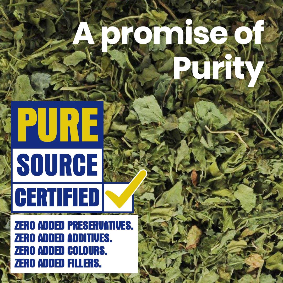 Hey! Its me Kasoori Methi. Proud of: My role in enhancing flavour and taste. Sourced from farms in Maharashtra, CRISTA Kasoori Methi is characterized by its deep green appearance. The spice adds a bold flavour to many Indian dishes. It is an essential accompaniment in Garam Masala. In order to attain the highest degree of purity, the spice is hand cleaned using a stringent rule book for quality control.