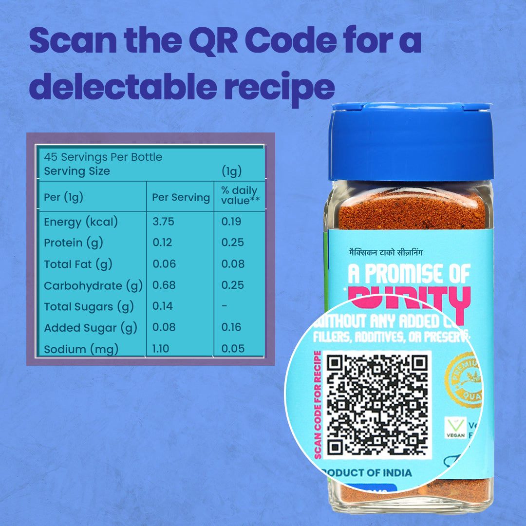 Hey! Its me, Mexican Taco Seasoning. A testament to the modern Indian consumer’s desire for new flavours that are complex yet versatile, CRISTA Mexican Taco Seasoning is a multipurpose Mexican seasoning that can be used in a plethora of Mexican dishes including, taco, enchilada and burrito. The seasoning is designed to give your food an authentic, natural and balanced flavour that is synonymous with Mexican cooking. Freshly machine ground using our sophisticated hammer crushers and micro pulverisers, the blend is mixed in an automatic GMP blender to achieve the desired balance and consistency.