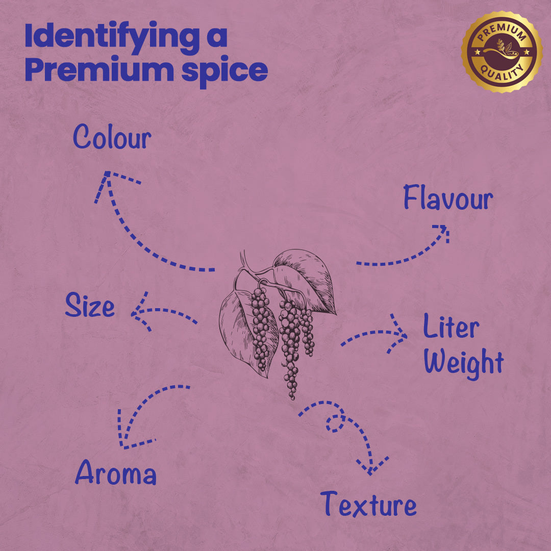 Premium quality, natural, sundried Indian White Pepper is handpicked from