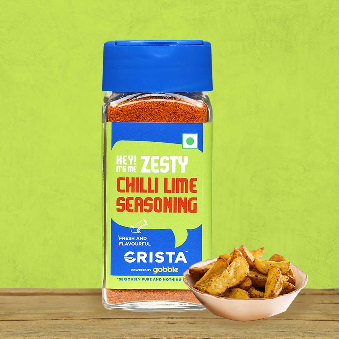 Hey! Its me Zesty Chilli Lime Seasoning. Versatile yet complex, with the perfect balance of tangy and spicy, CRISTA Zesty Chilli Lime Seasoning is the perfect sprinkle on fresh fruits, veggies, fajitas, french fries, potato wedges, corn on the cob or baked salmon. Catering to the needs of modern Indian consumers, this blend adds an authentic punch and spicy/tangy flavour to pretty much any sweet or savoury dish.