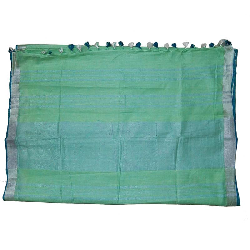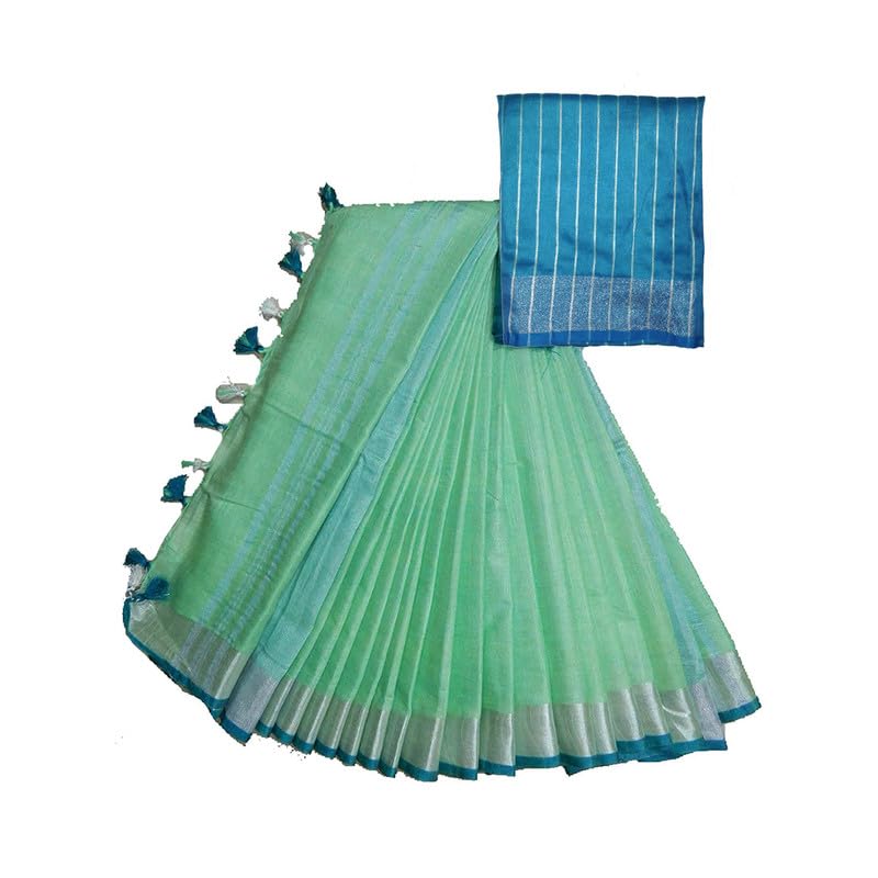 - Saree Material: Linen Cotton Blend ; Design : Contrast with Striped Blouse Piece & Zari Border