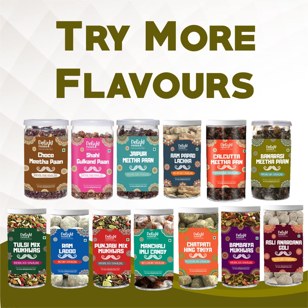 Details: From time immemorial Paan has been an integral part of Indian food culture. Although there are literally hundreds of variants of paan available, Banarasi Meetha Paan has gained a special place in the hearts of Paan lovers because of supari free refreshing sweet flavour. Hailing from one of the oldest cities in the world, Banarasi Paan comes with a legacy. Even to this day, you will find at least 1 paan stall in every nook & corner of Banaras/Varanasi. We bring you this authentic, refreshing and the most delicious Paan prepared using dry fruits, real betel leaves & an age old recipe. Our paan is prepared & processed in a very hygienic facility to ensure genuine flavour & premium quality. Banarasi meetha Paan doesn’t contain supari or areca nuts. You can simply have it as a digestive after your meal or as a mouth freshener or even munch on it just for the love of it. The refreshing flavour of this paan is so popular that a Bollywood song has been written on this – “Khaike Paan Banaraswala, Khuljaye Band akal ka tala..” which literally means, unlock the shut door of your brain with the refreshing flavour of Banarasi Paan! So what are you waiting for? Go order your refreshing dose of Paan today. Veg | Store in a cool dry place, do not use a wet spoon. | Best before 365 days from the date of packing.