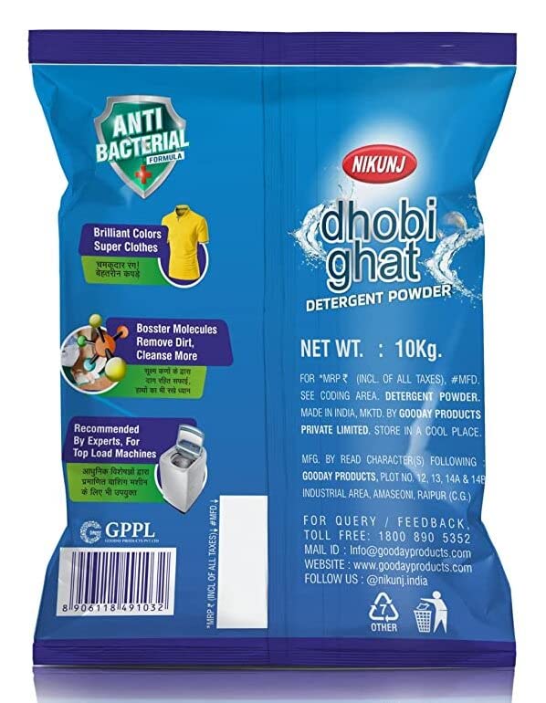 - High-capacity pack: The Dhobighat Detergent Powder 10kg pack provides ample supply for extended use, ideal for large households or commercial laundry services.