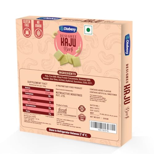 Diabexy Desi Ghee Sugar Free Kaju Barfi - 200g quantity