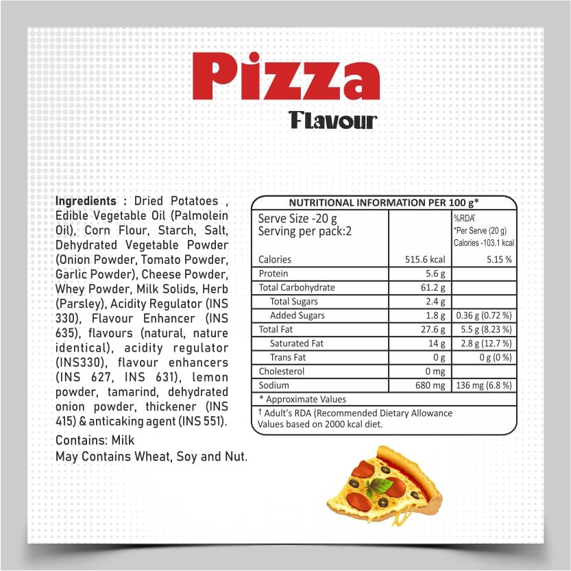 Indulge in the perfect 100% vegetarian snack for any occasion with Dibs stacks Pizza Potato Crisps Chips. Made from the highest quality, farm-grown potatoes, these chips are topped with an exquisite blend of delicious flavors and nutritious ingredients such as tamarind, parsley, and cheese. Enjoy the delectable taste and crunchy texture for up to 6 months.