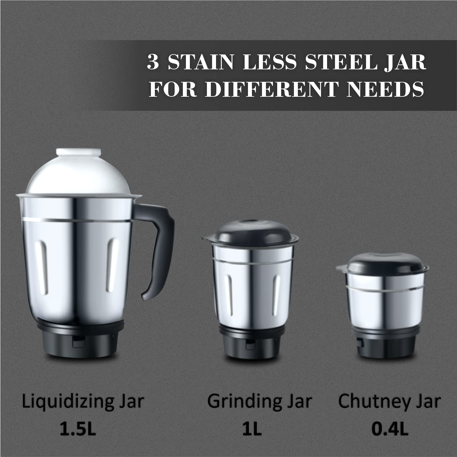 - ✅STAINLESS STEEL JARS AND BLADES: It Comes Equipped With High – Quality Stainless Steel Jars And Blades. Stainless Steel Fine Blades For Best Chopping, Grinding And Juicing. They Can Perfectly Blend Even The Harder Food Stuffs Very Easily. It is Hygienic and Easy to Clean as Well.