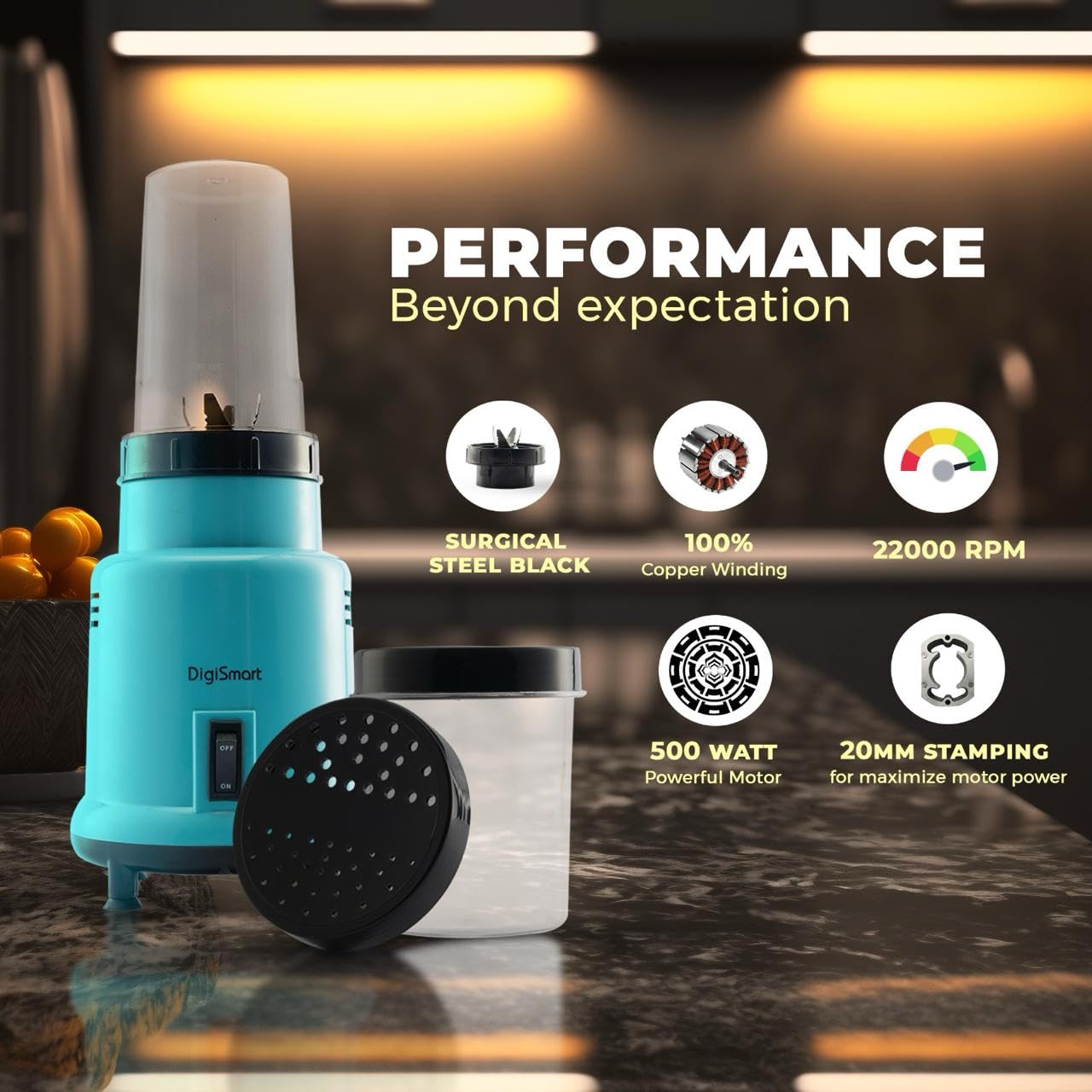 - ✅Powerful Motor: The compact yet powerful machine grinds the toughest of chutneys and masalas, and ensures nutrition extraction from all fruits and veggies thanks to its incredibly high speed of 22,000 RPM, which is almost twice that of normal mixer-grinders.