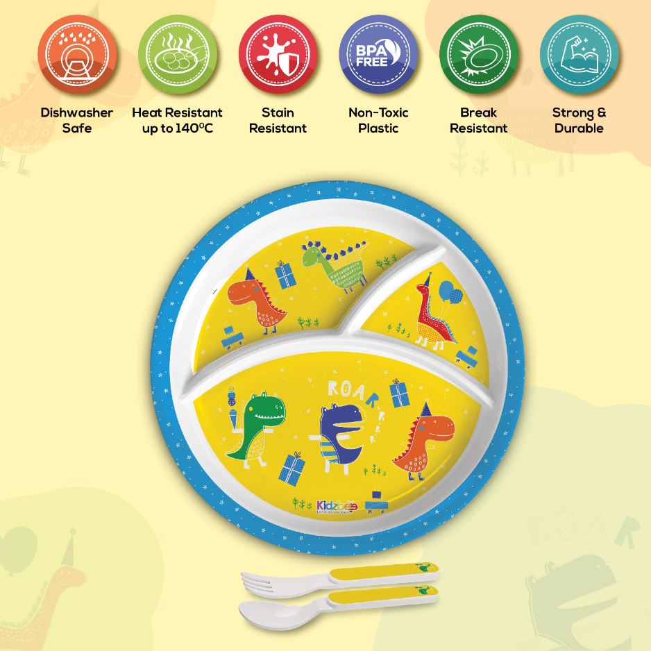 Introducing the Kidzbee’s Melamine collection Set of 3 seamlessly blends safety and style for your little ones. Not only visually appealing, but they also ensure shatterproof reliability and dishwasher safety. The designs are printed with food-grade ink, prioritizing your child’s safety during mealtime. Kidzbee’s Melaware is not just a delightful addition to your table. It’s a promise of trust and a happy, healthy dining experience for your kids! Kidzbee Pentameal comes with a Plate, Fork, and Spoon.