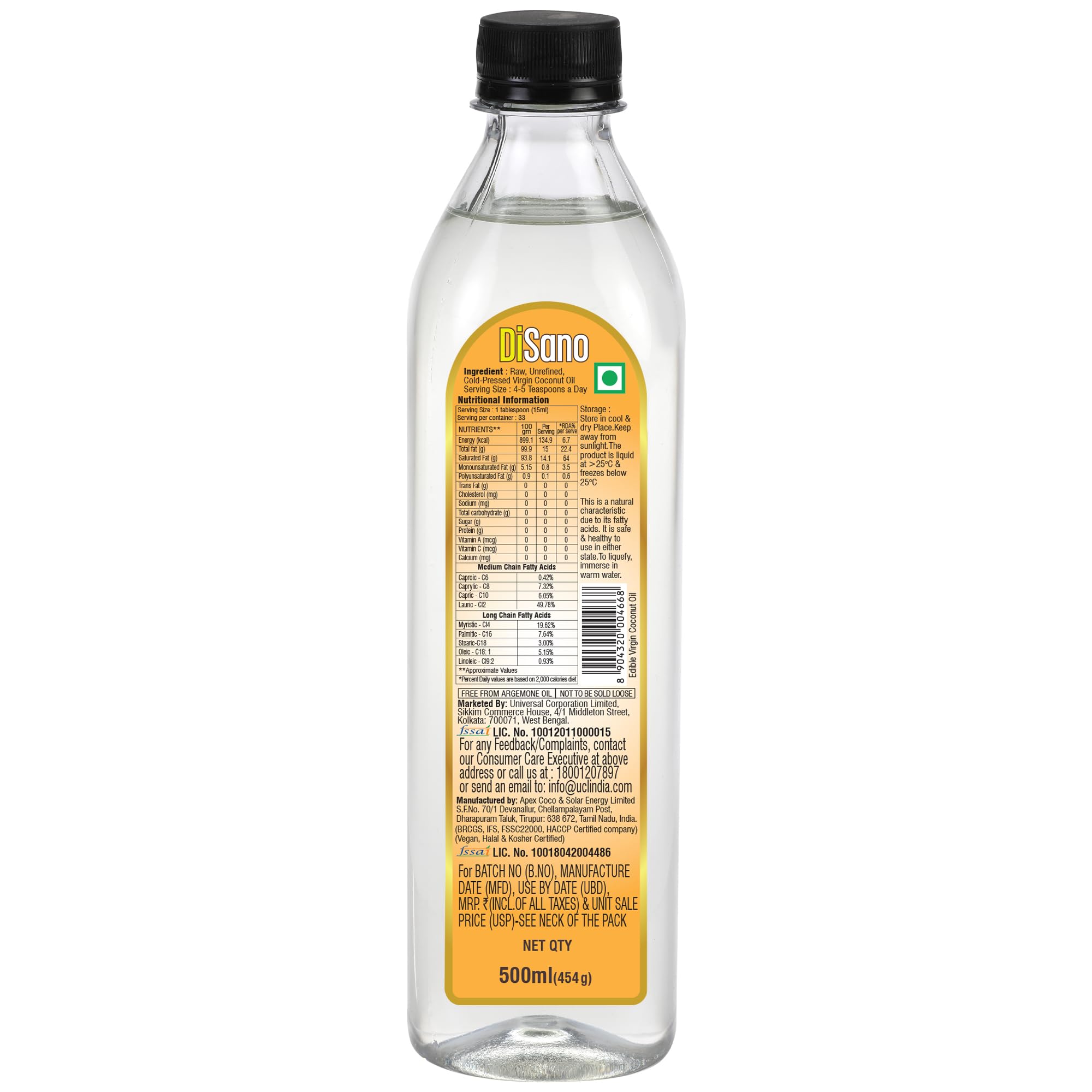 Details: Disano cold press virgin coconut oil come with 100 percent natural, cold pressed unrefined and ideal for cooking, dietary, skin and hair.