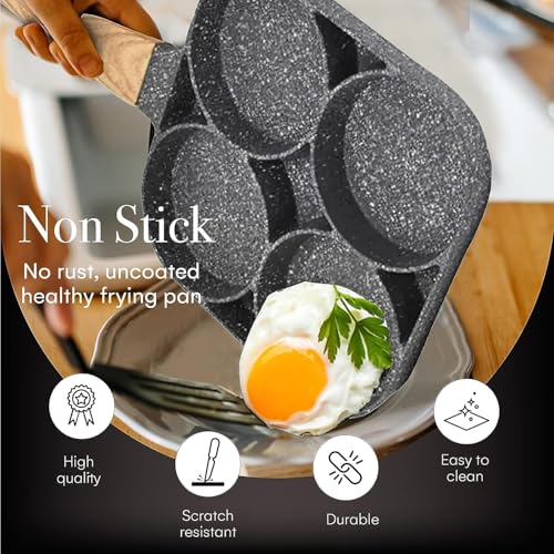 - 🍳 Perfect Size : The four round holes are just the right size for creating perfectly round fried eggs or mini burger patties.