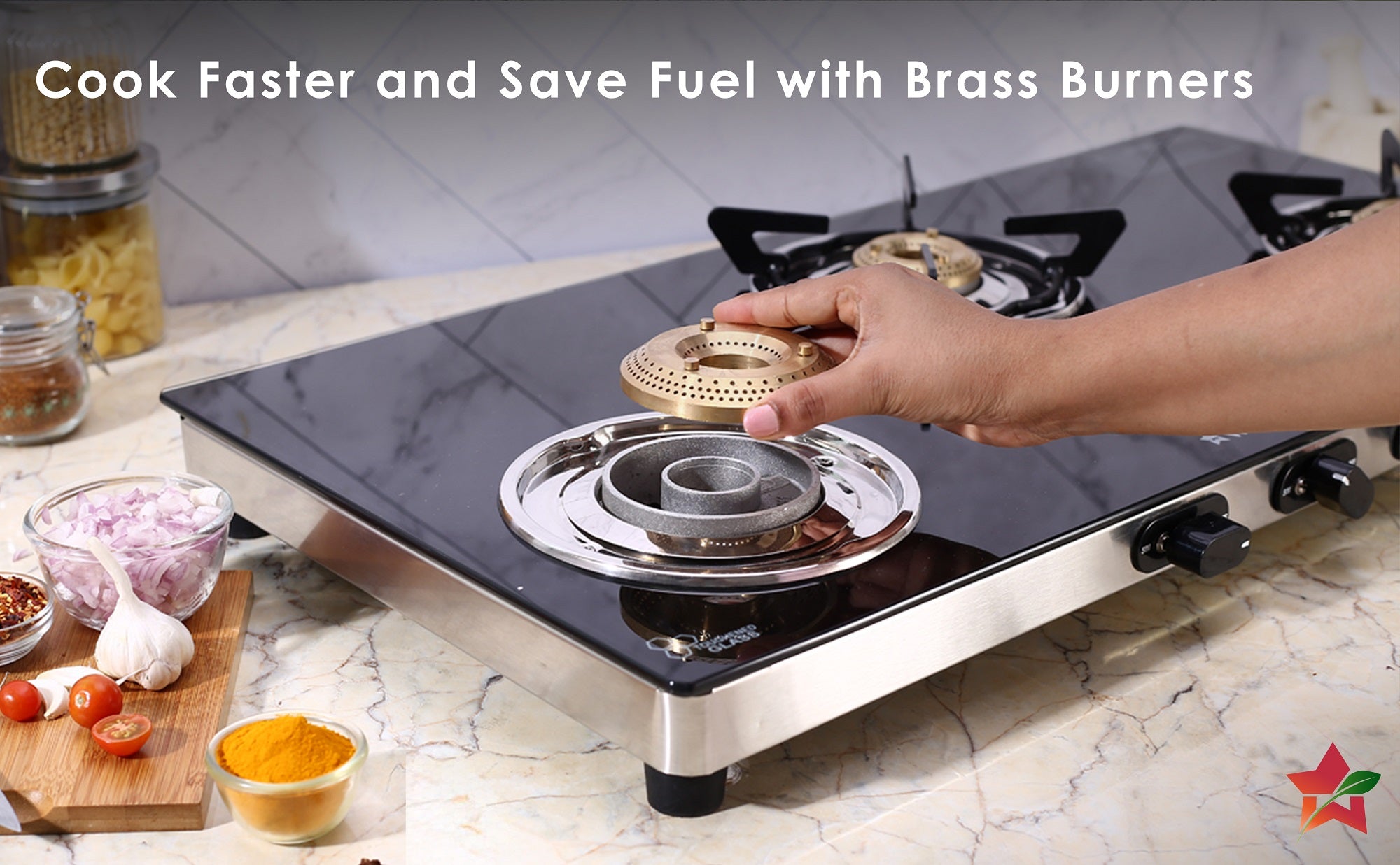 - LARGE TRI-PIN BRASS BURNERS: The burners are made of high-quality brass, and designed with a tri-pin configuration, offering efficient heat distribution and uniform cooking.