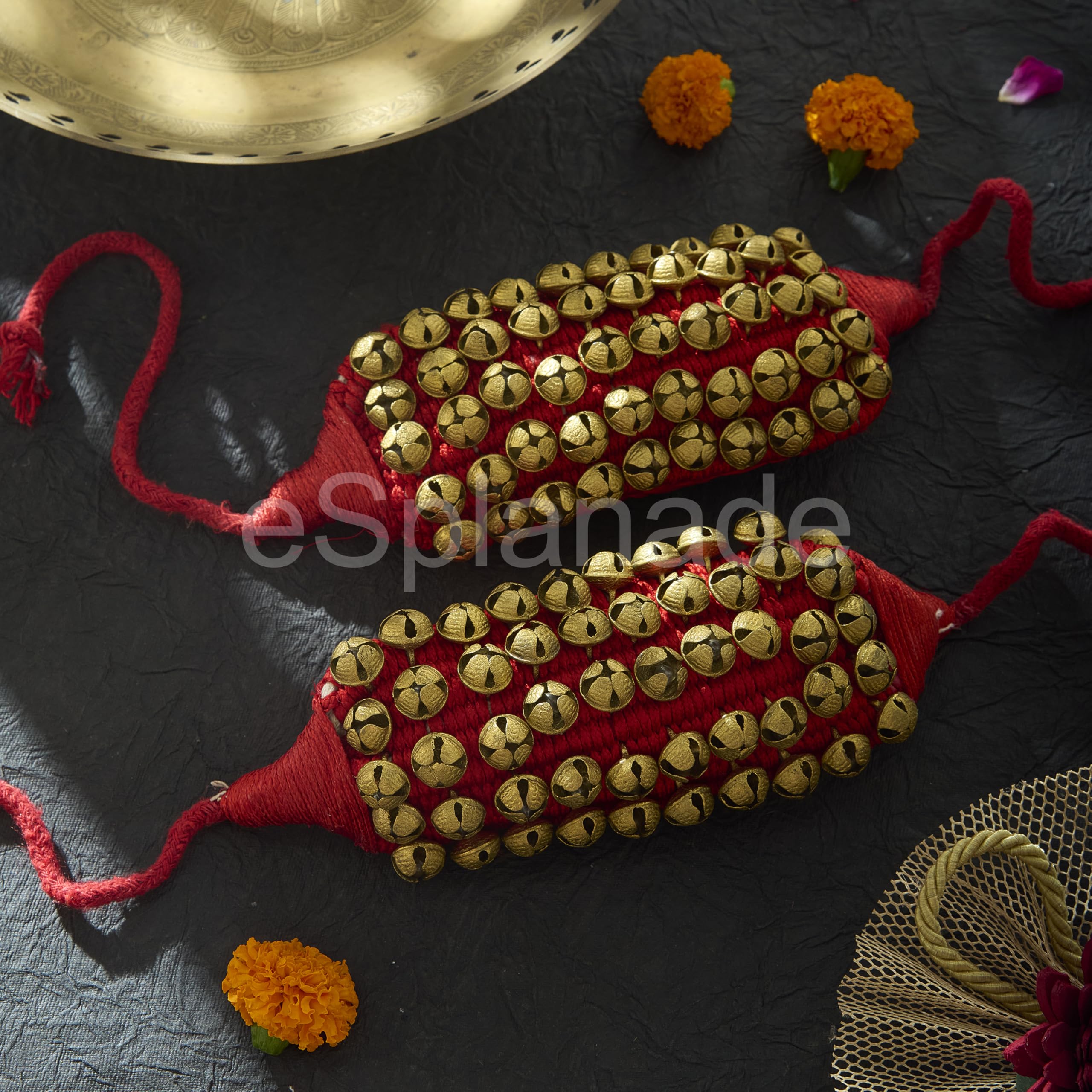 - Bells of brass tied with cotton cloth. The Ghungroo are sewed/ stitched to the fabric.