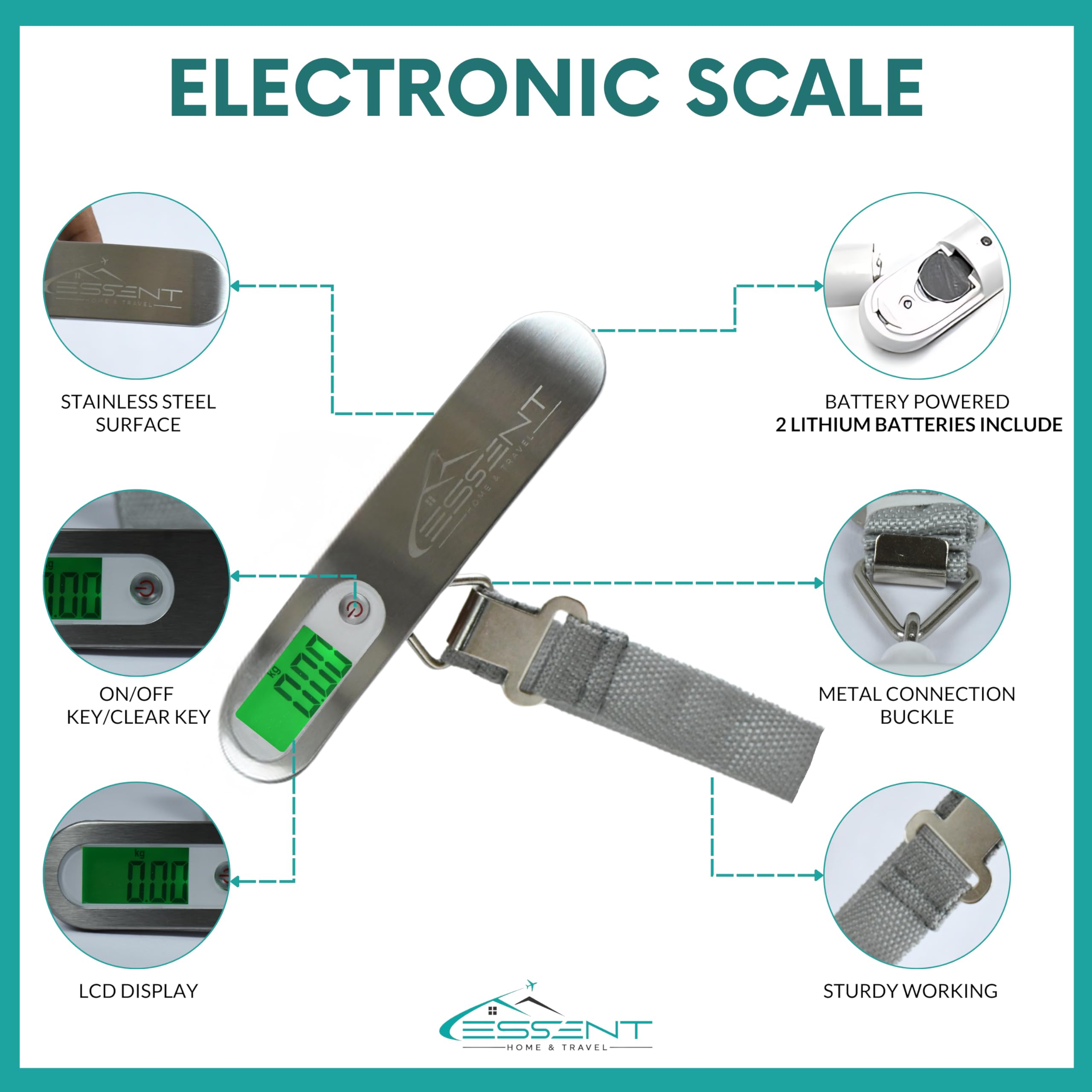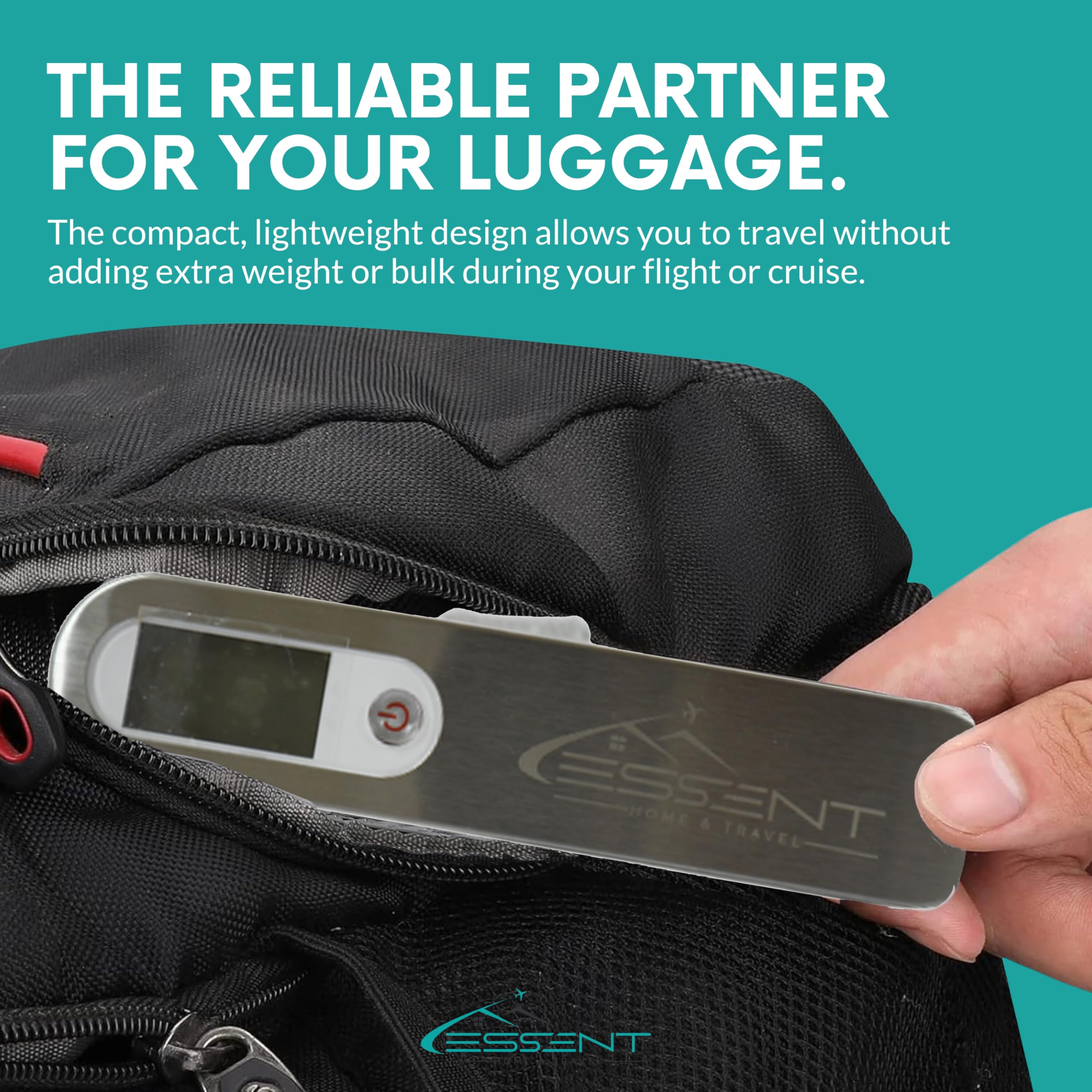 - Built to Last: Constructed with a stainless steel top and ABS plastic bottom, this compact and lightweight weighing machine for luggage weighs just below 100 grams and measures 14x3cm. Packaged in a premium Essent branded Carton box, it includes two 3V CR2032 batteries, making it a reliable bag weight scale for luggage.