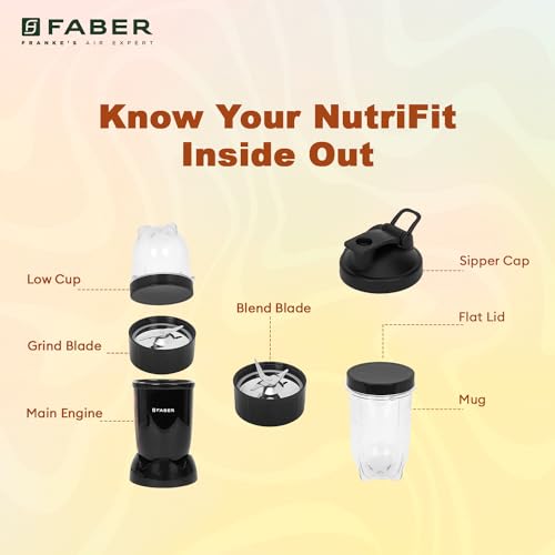 - Faber Sportz Blender FSB 3 in 1 Nutrifit Nero has two PC Jars (500 mL & 300 mL), 1 Number 500mL PC Mug, 2 Number Flat Lid, 1 Sipper Cap, Grinding Blade & Multi Blade