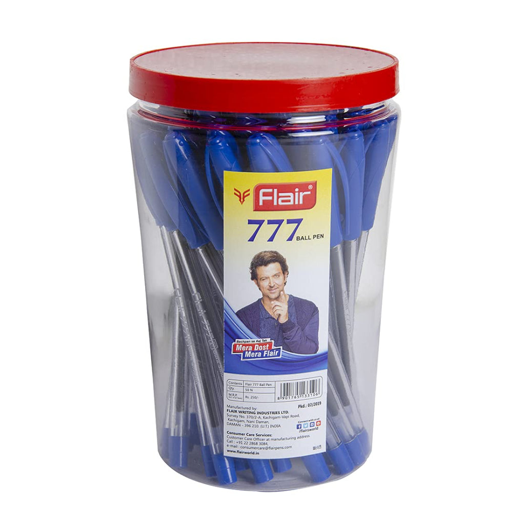 - Package Including : 777 Ball Pen, Tip Size : 0.7 to 1 mm, Ink Colour : Blue Ink, Tip : Stainless Steel Tip, Ink Characteristics : Low-Viscosity ink, Pack Size : Pack Of 50