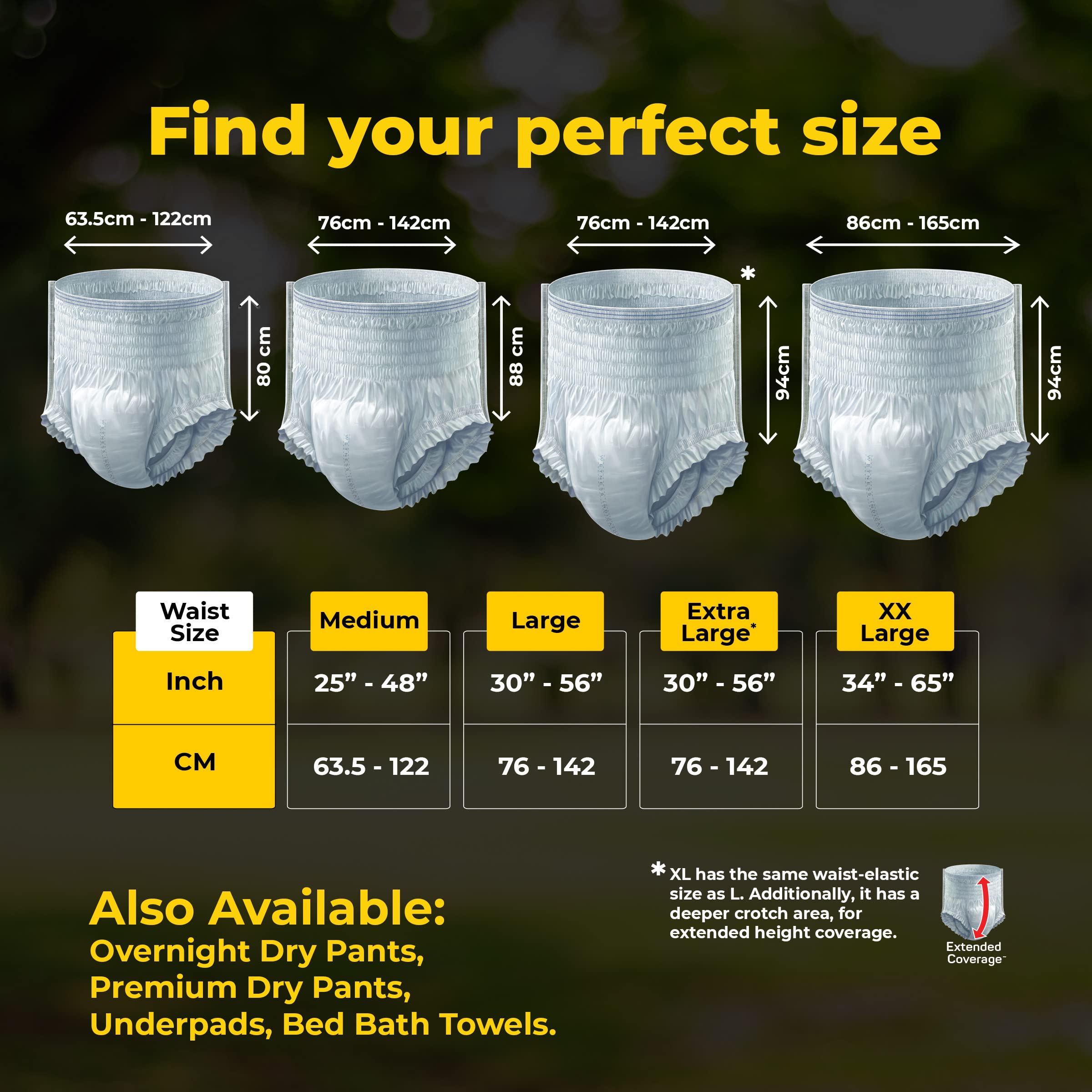 - Friends Adult Diaper medium size pants with 8 hours of protection are also available in sizes L, XL, and XXL.
