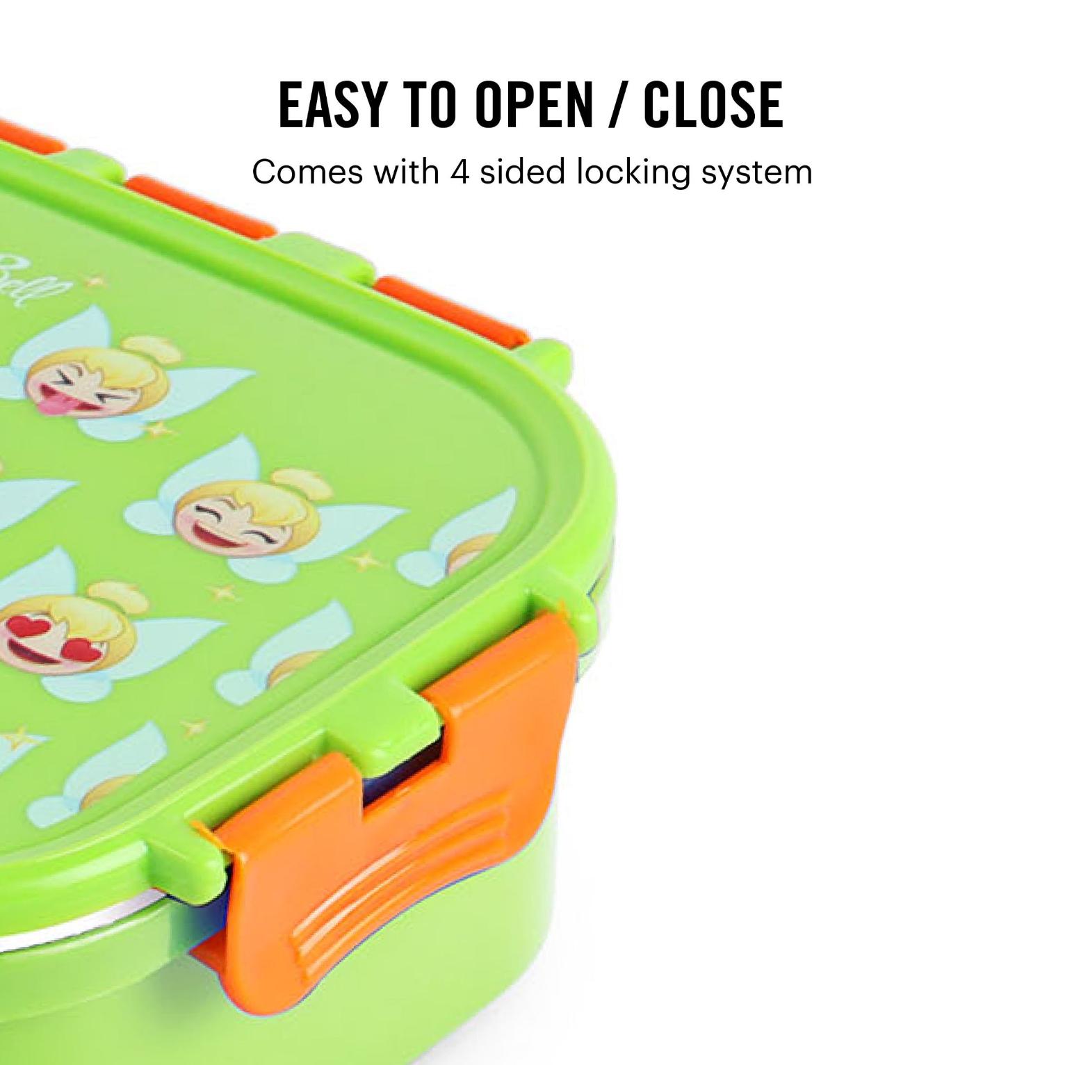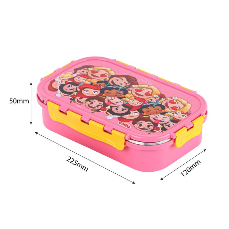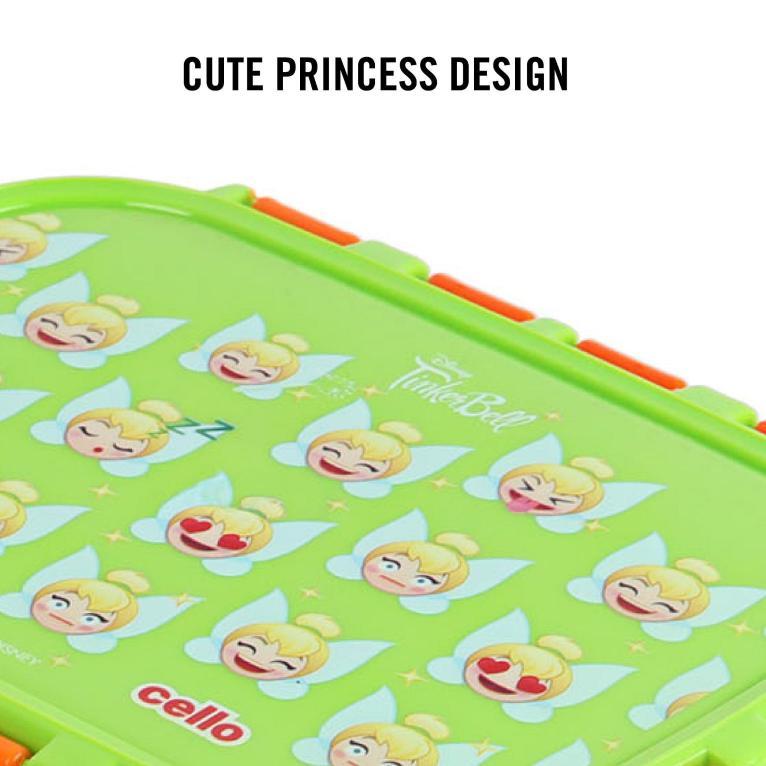 - Cello Kidzbee Fun Food insulated lunch box for kids, featuring vibrant Emoji style Disney Princess, Spiderman and Tinker Bell prints.