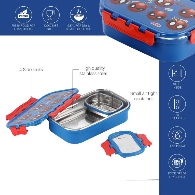 - Includes a leakproof steel container inside, ideal for carrying gravies, curries, or dry snacks, offering a diverse meal experience.