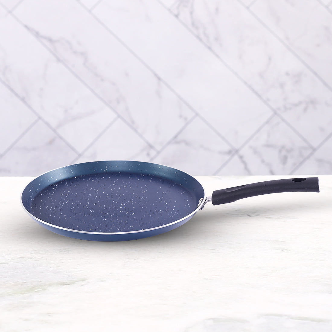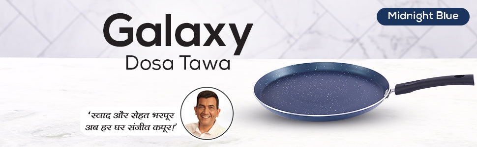 Galaxy cookware brings convenience to your everyday cooking. The dosa tawa in the beautiful midnight blue colour has heavy metal and PFOA-free non-stick coating that makes cooking food easy. Loaded with features and beautiful looks, Galaxy cookware is an ideal choice for gifting too.