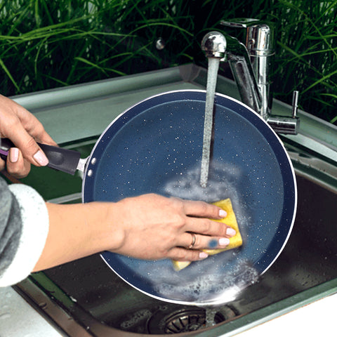 - Wash when cooled, do not place heated pan directly on any wet surface to avoid thermo-shock and to keep the coating safe.