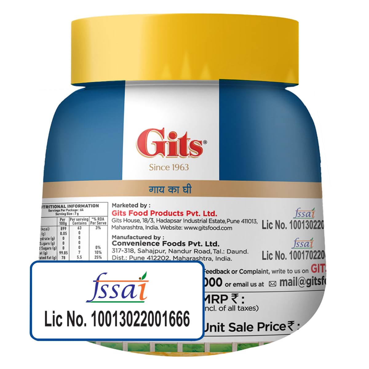 - Special Features – Staple of Indian cuisine. Gits Cow Ghee is made using the age-old process of churning, slow-heating of pure butter, and retention of fatty solids. Tastes like homemade ghee.