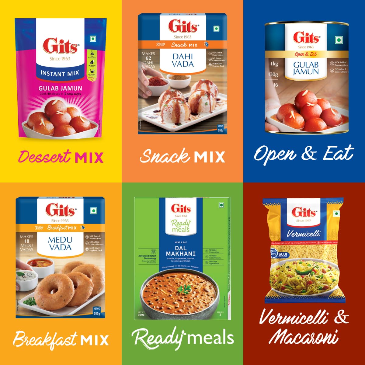 - Try our other best sellers – Gits Gulab Jamun Mixes, Gits Dessert Mixes, Gits Breakfast Mixes, Gits Snack Mixes, Gits Ready to Eat Gulab Jamun Tins, Gits Soan Papdi, Gits Ready Meals, Gits Vermicelli, Gits Macaroni.
