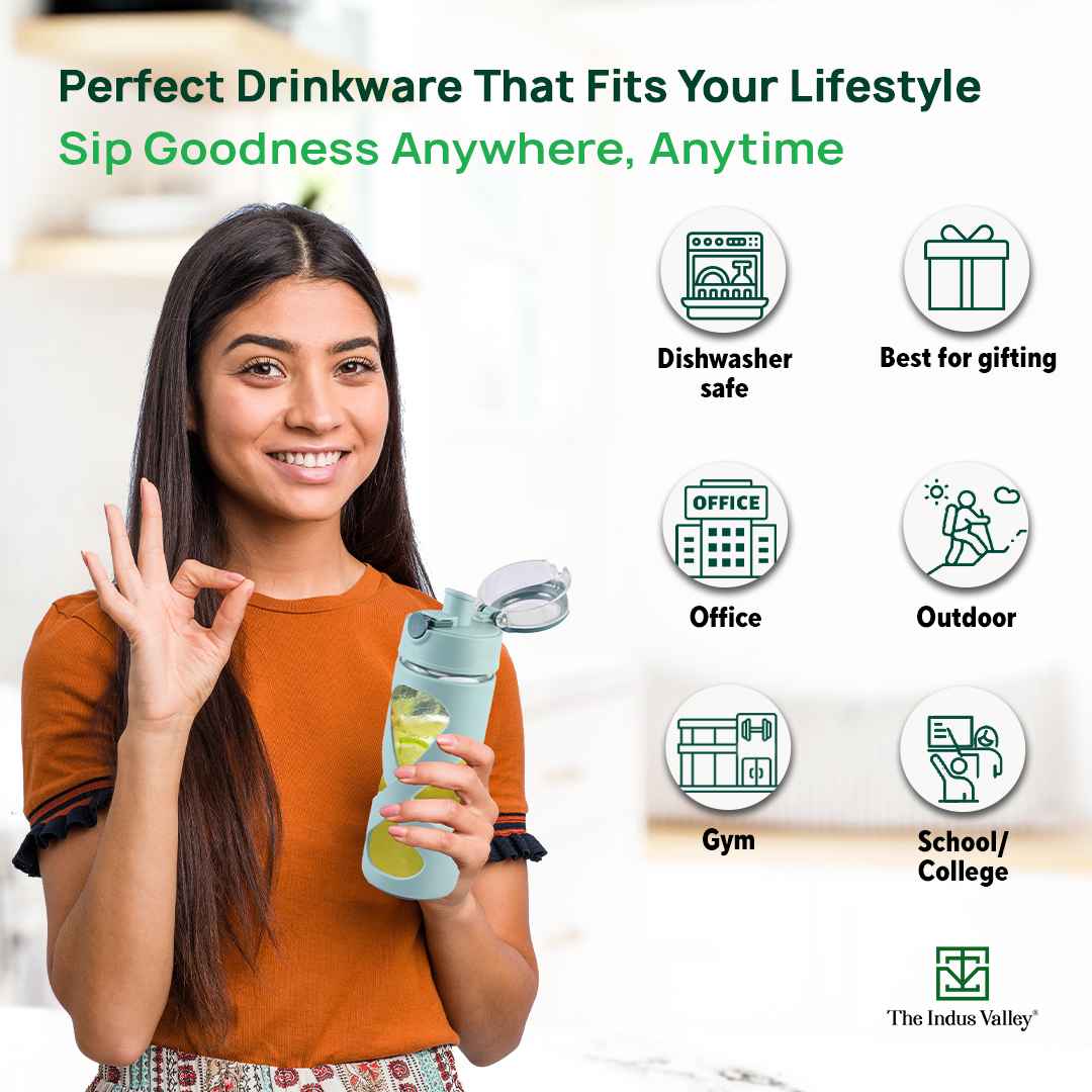 Besides water, the drinking bottle is useful for carrying juices, shakes, cool drinks, flavoured tea, etc.
