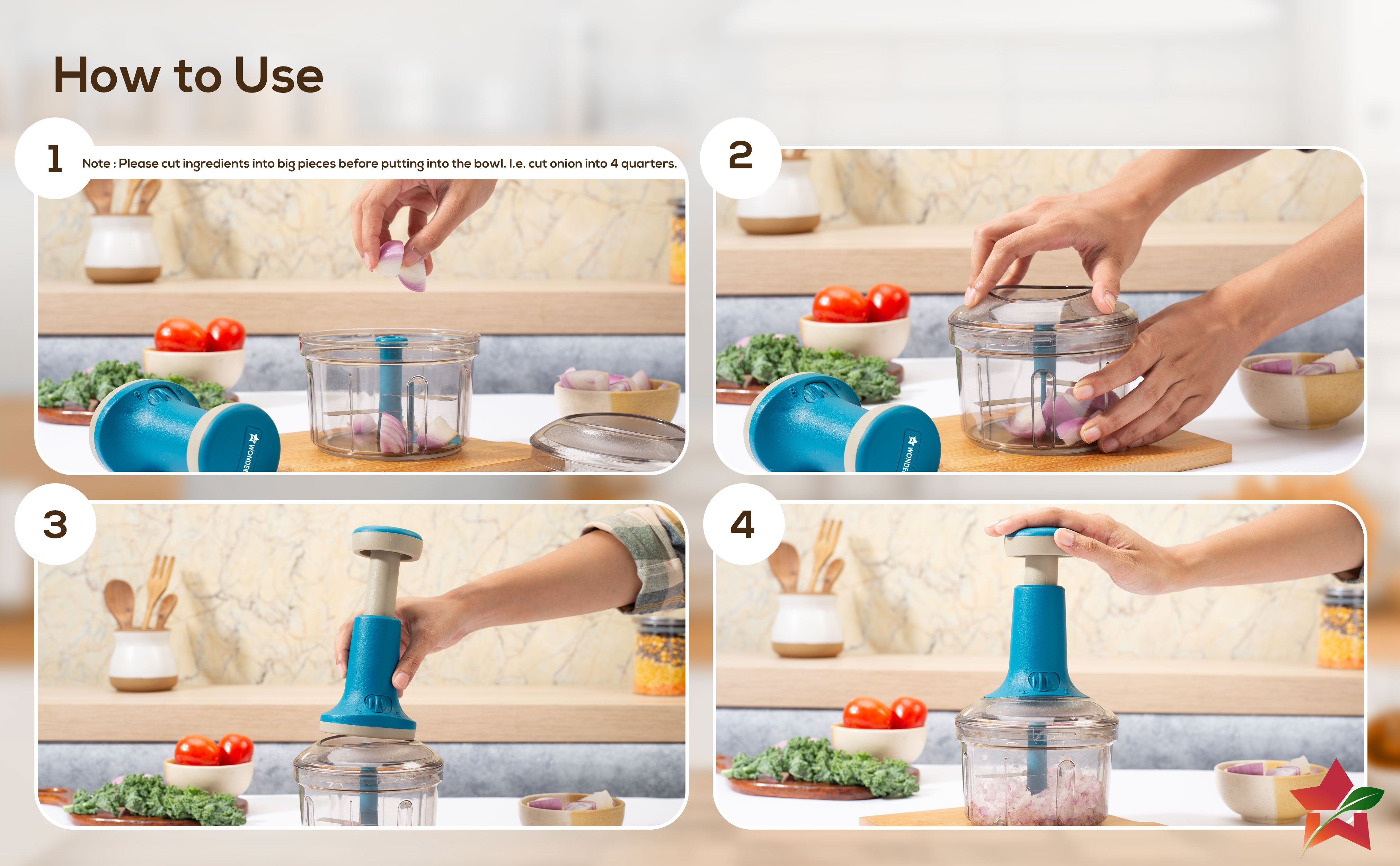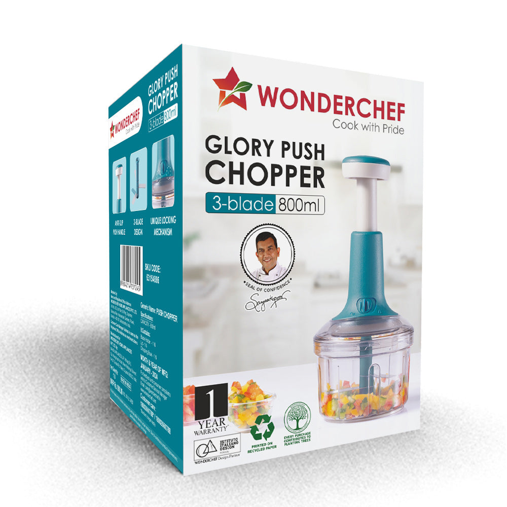 Introducing Wonderchef Glory Push Chopper – your companion for quick kitchen preparations! Chop vegetables, nuts, and other such hard ingredients with ease – just a few pushes and your ingredients are ready to be cooked. Customize the size of your vegetables with the number of pushes.