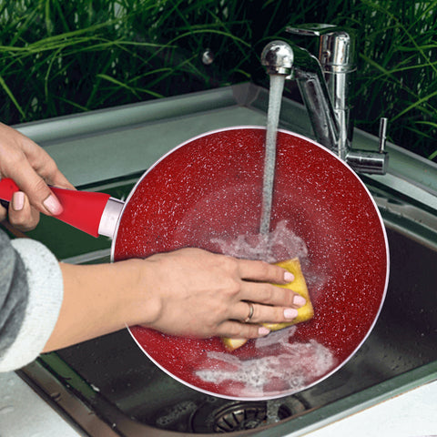 To clean, hand wash the cookware in warm, soapy water, and then rinse and thoroughly hand dry. Safety Instructions