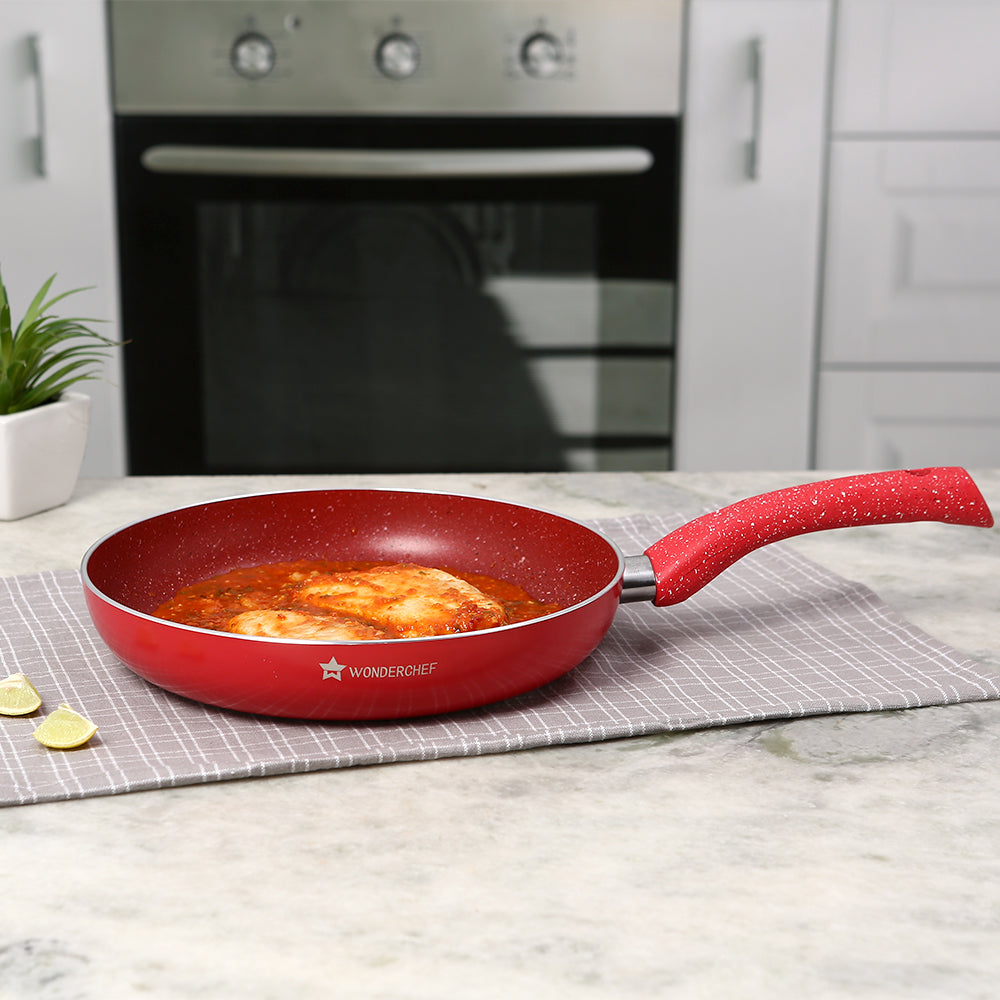 Enhance your cooking and dining experience with the most popular Wonderchef Granite Fry Pan. The granite finish gives the aluminium cookware a stylish and modern look. Designer forged pans made with pure grade virgin aluminium for quick and even heat distribution. Wonderchef Granite Fry Pan is ideal for frying, searing and browning foods. Evoke the inner chef in you and cook healthy, low fat and delicious meals at home.